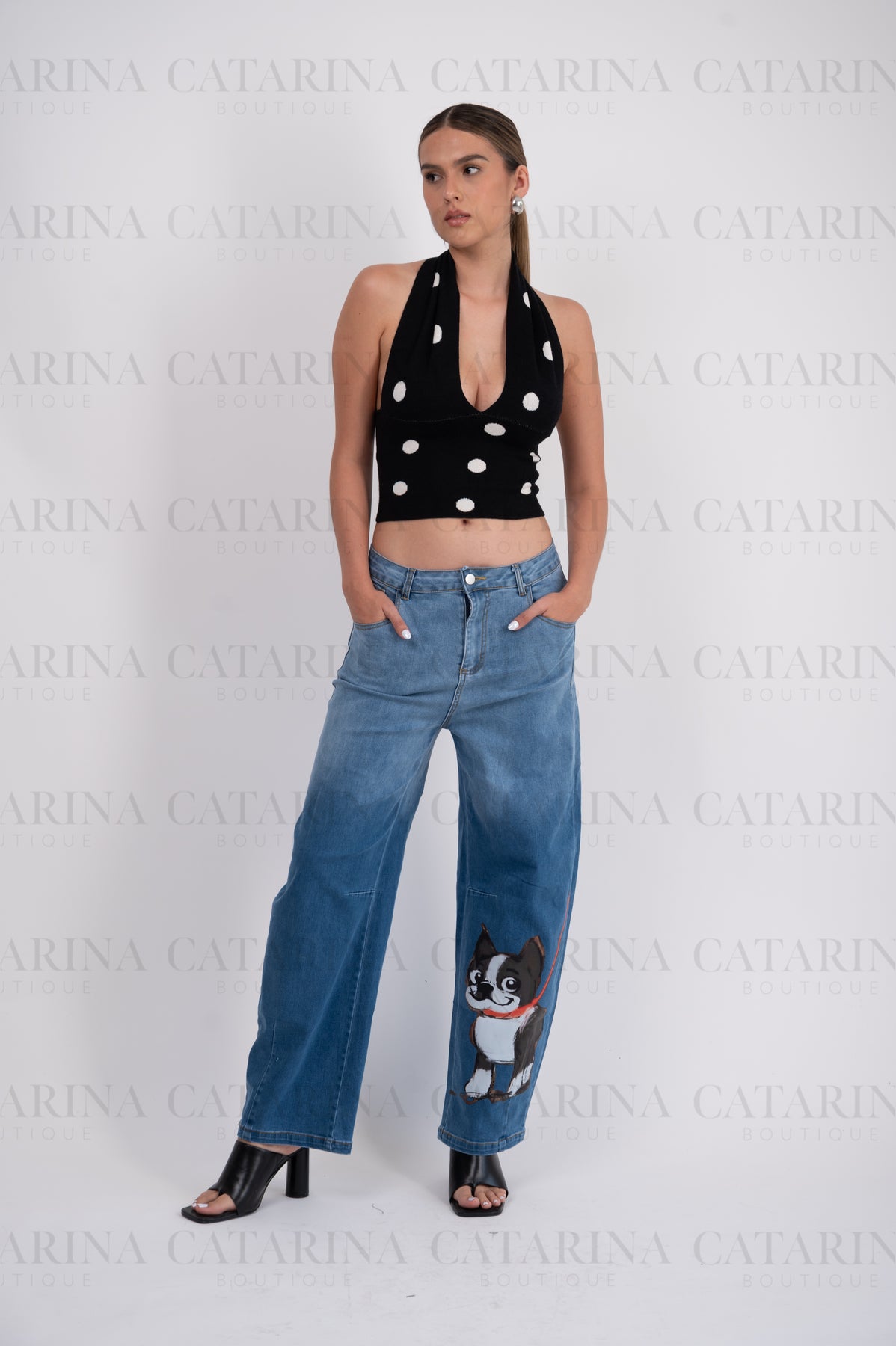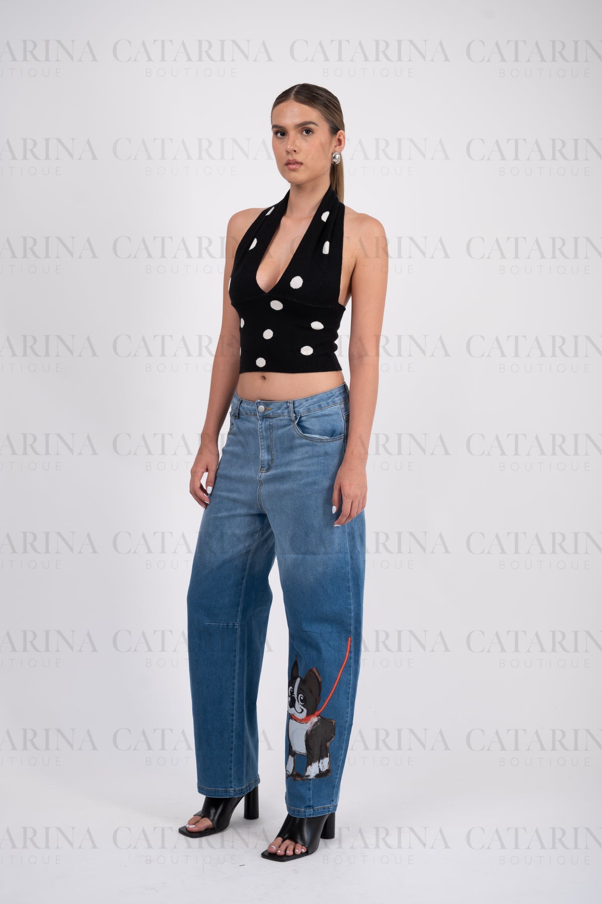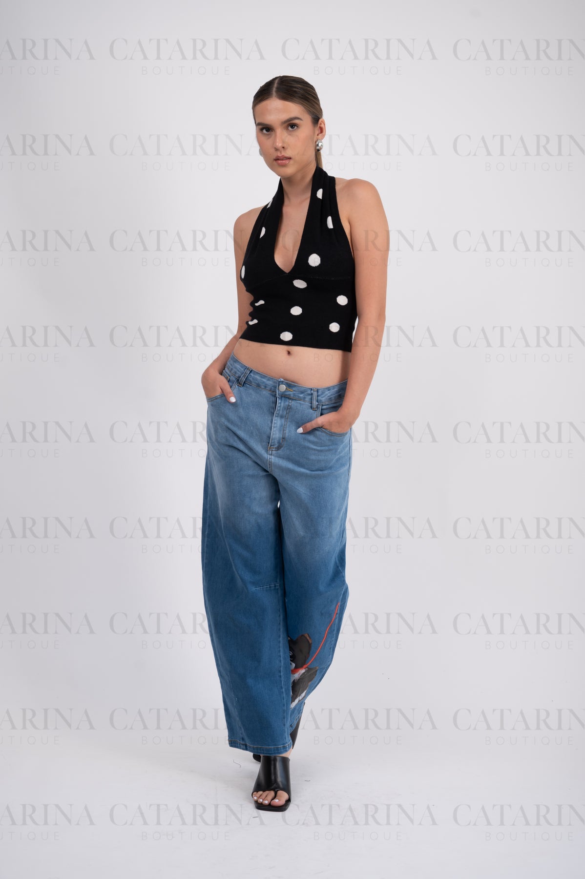 Blusa con estampado. Escote pronunciado. Tipo halter. Bajo acabado recto.