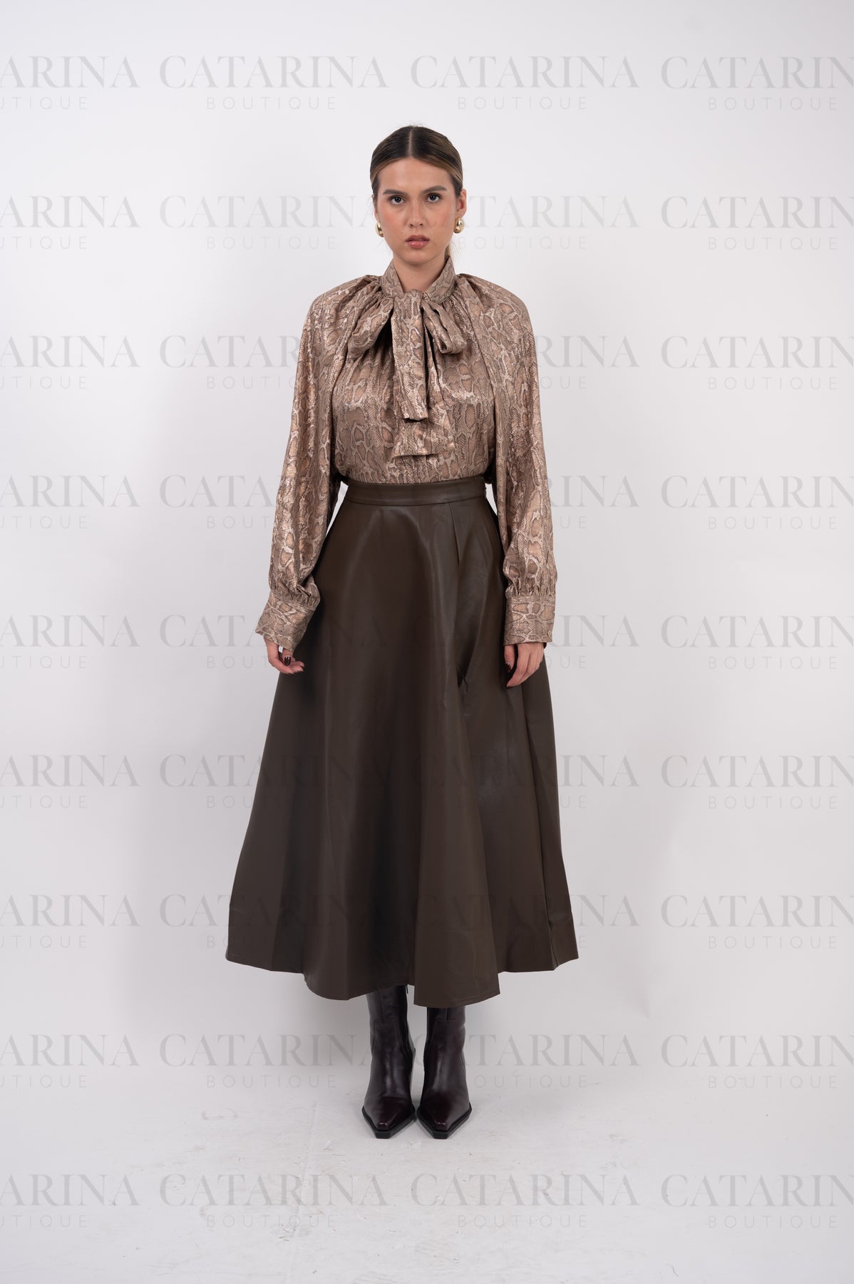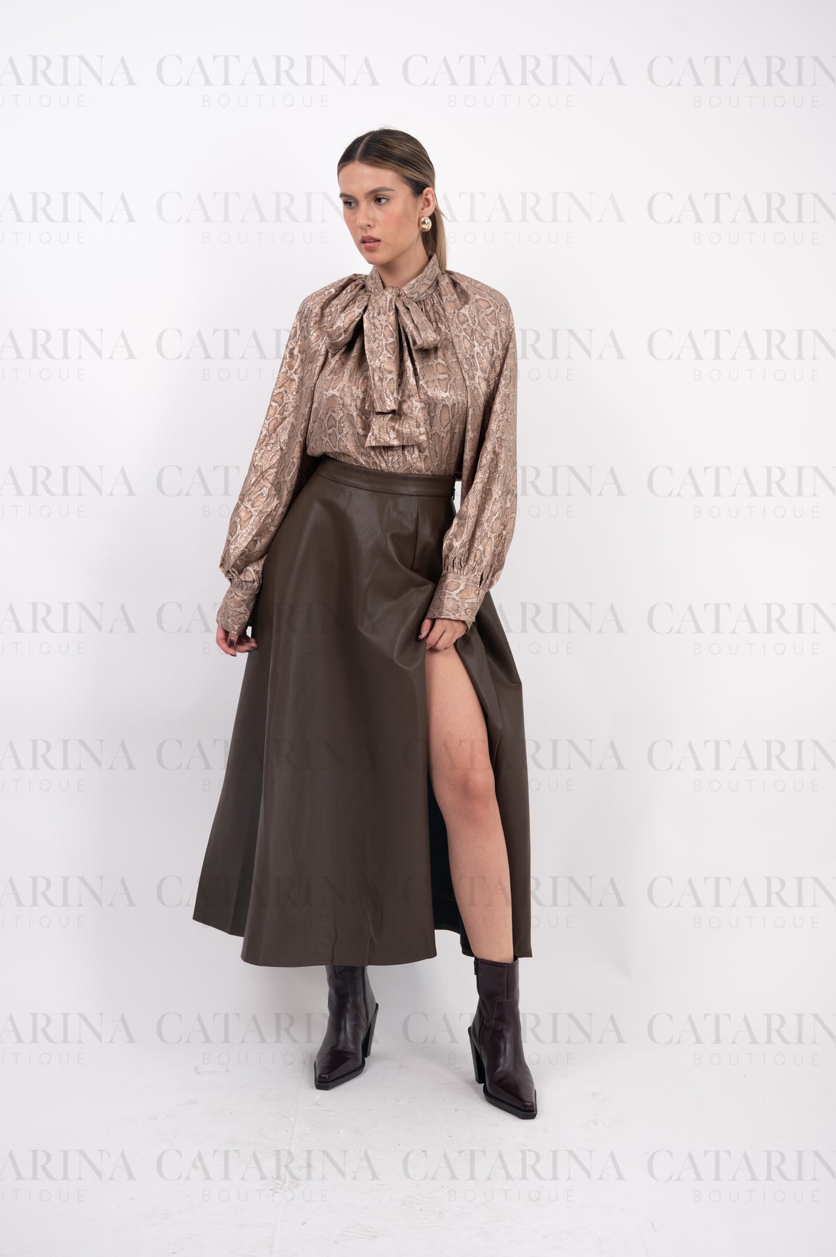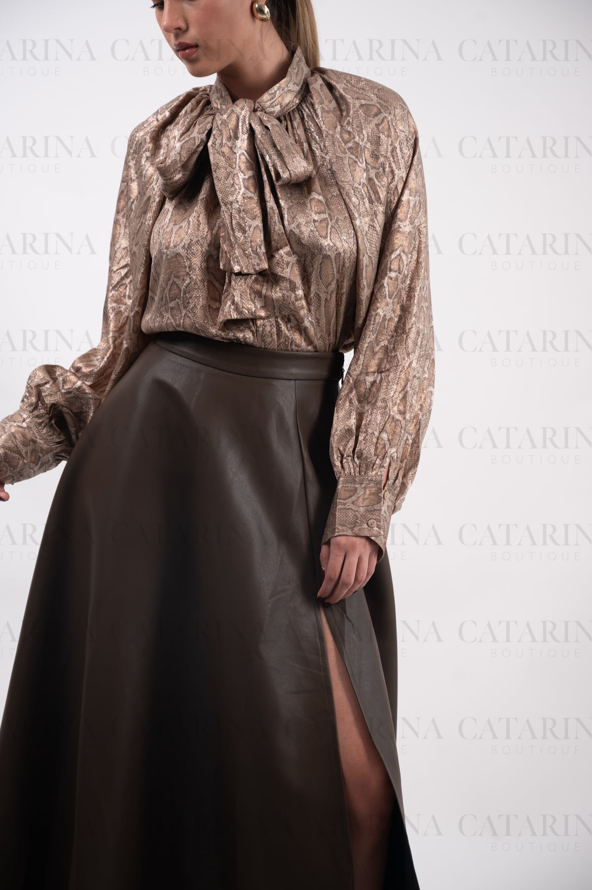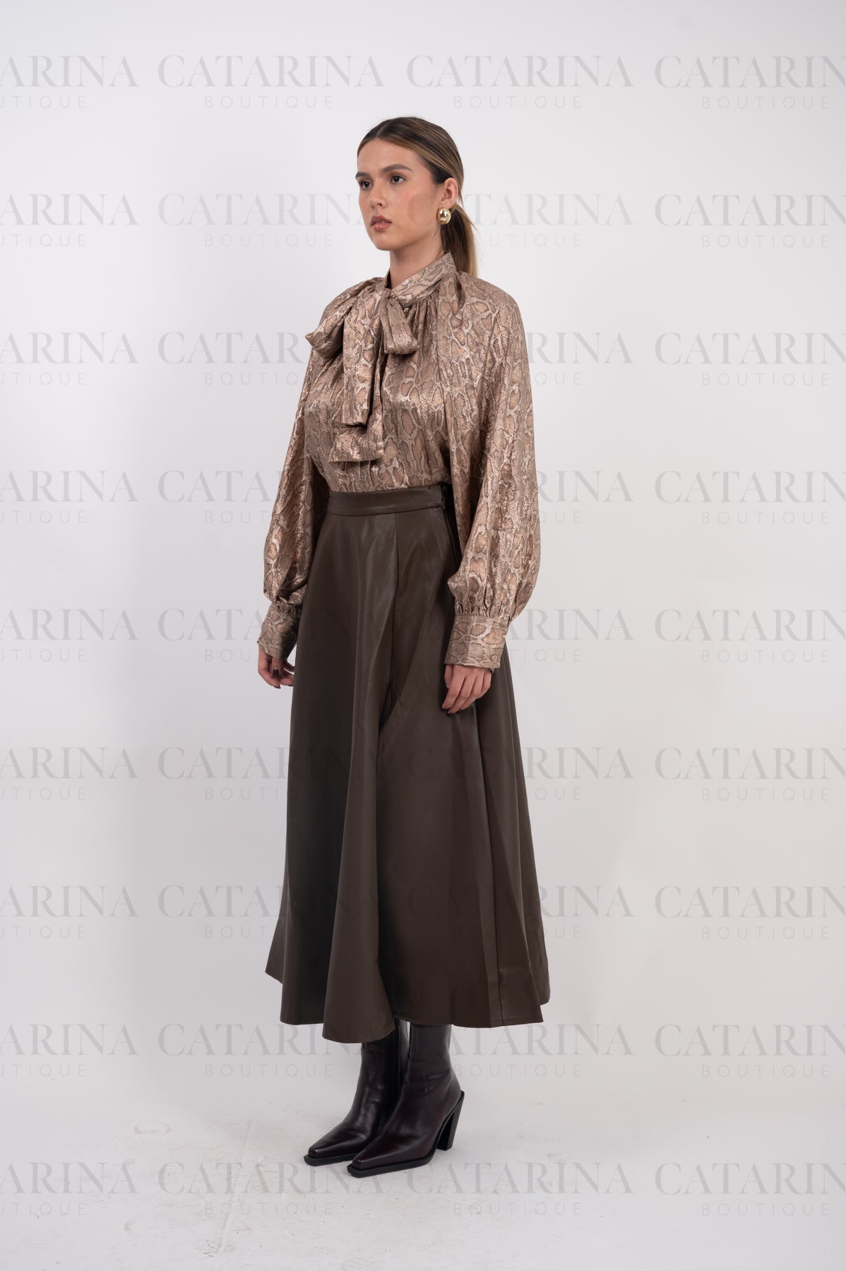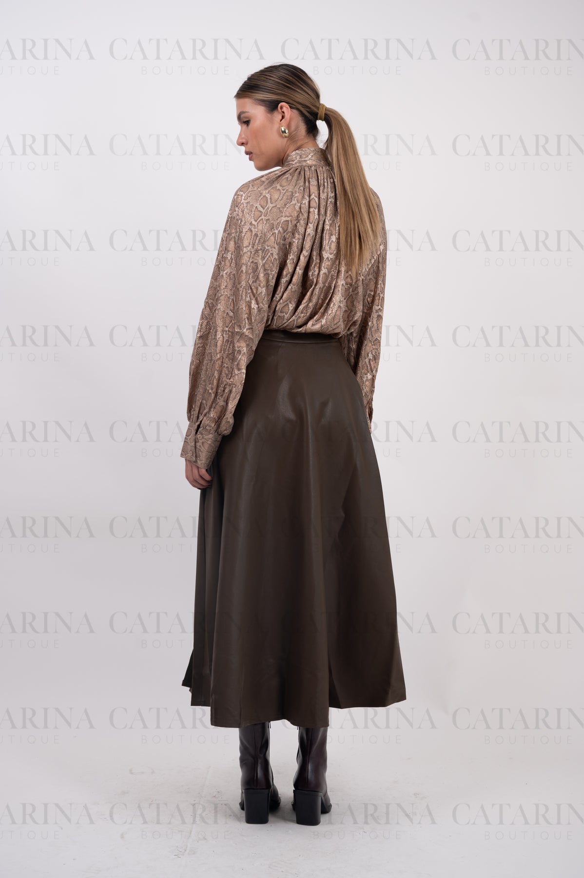 Blusa de manga larga. Cuello alto. Bajo acabado recto. Estampado en todo el cuerpo de la camisa.