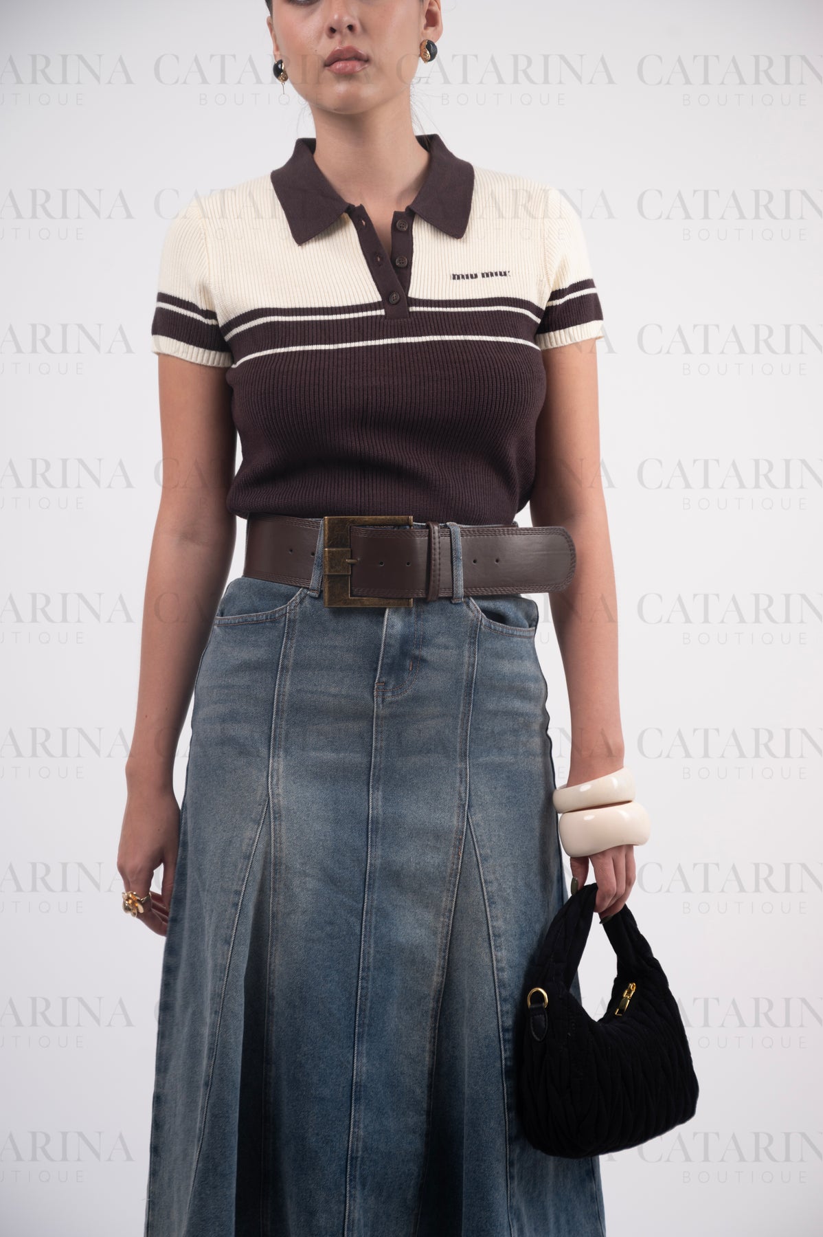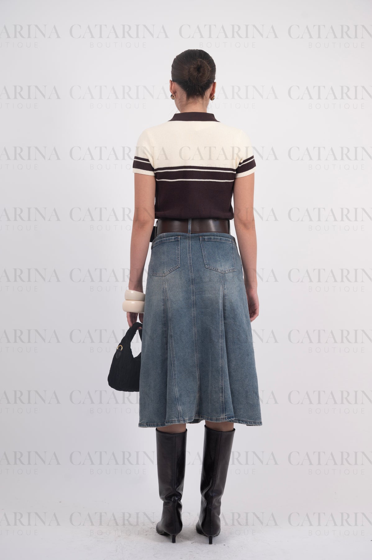 Blusa de manga corta. Cuello tipo polo de solapa. Escote en V con botones.