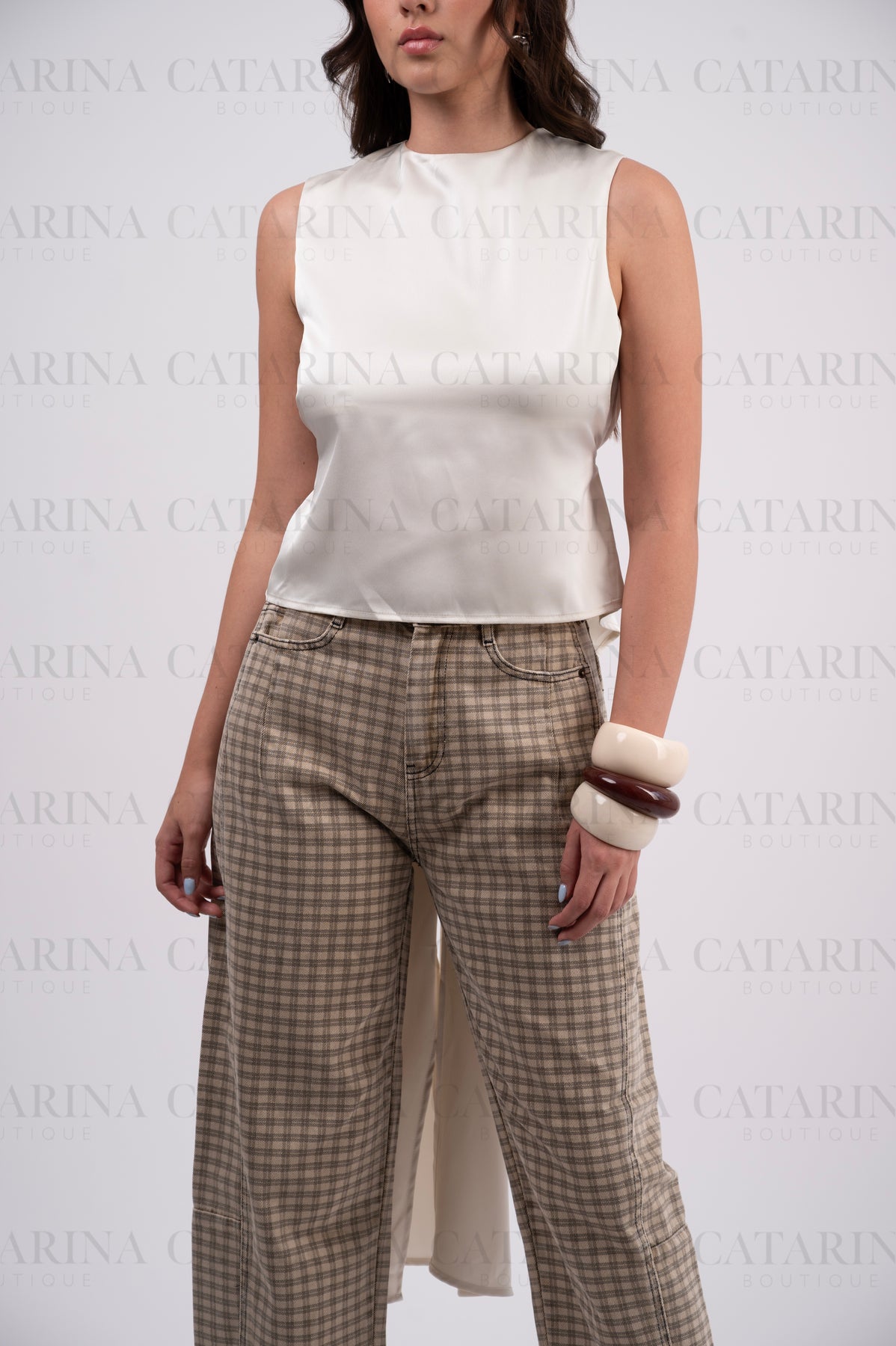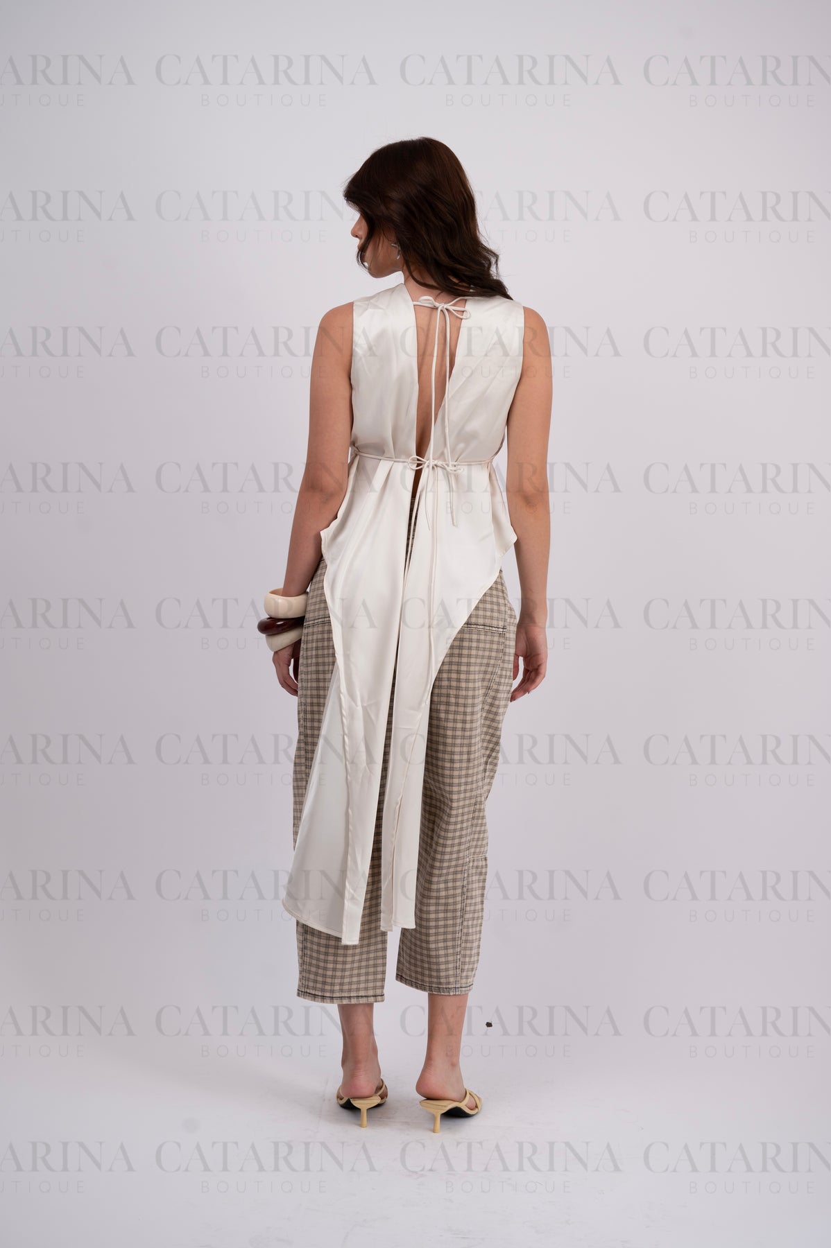 Blusa de color liso. Escote redondo. Manga tipo sisa. Bajo acabado recto.. Detalle de lazadas y escote en espalda.