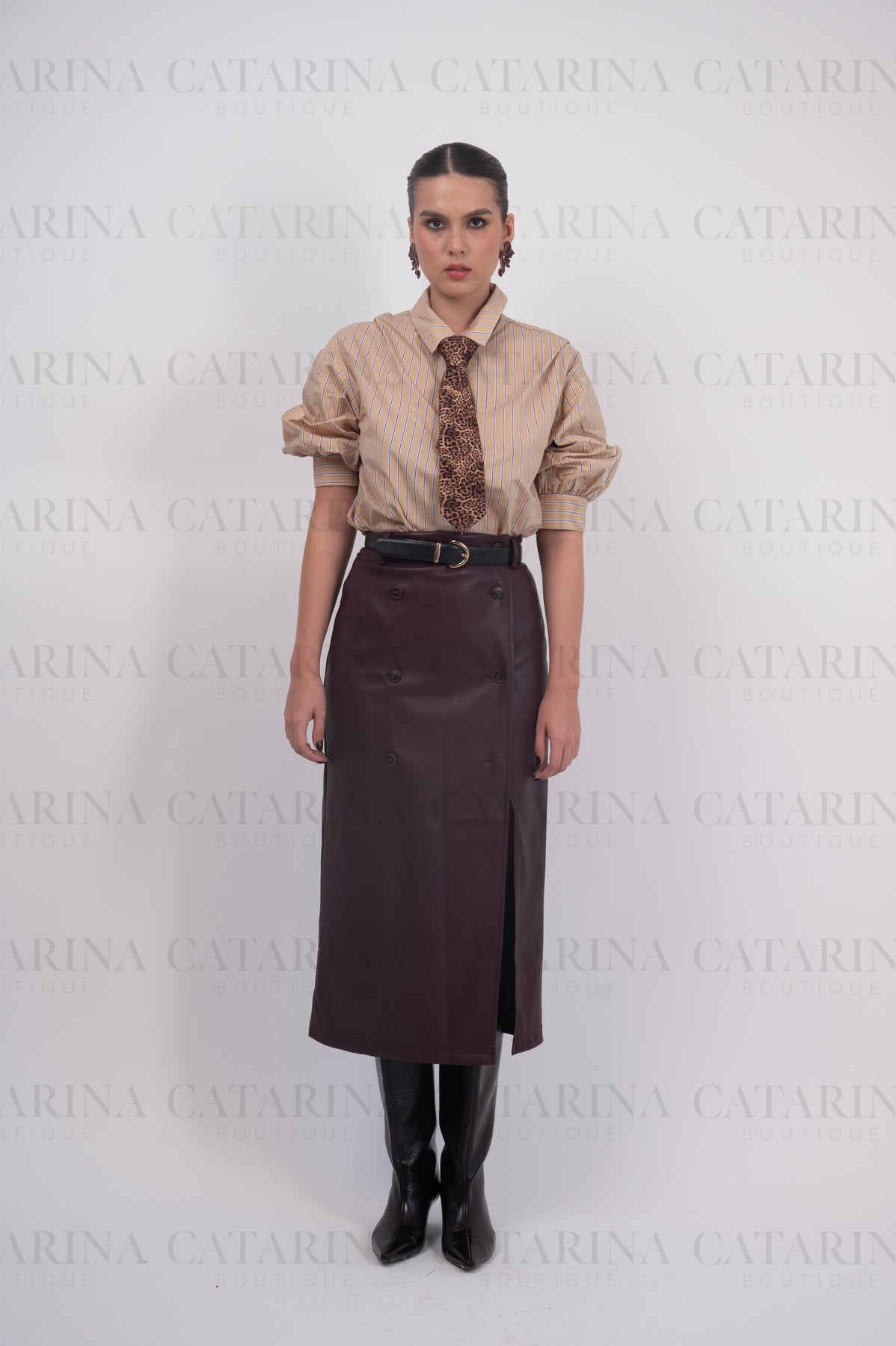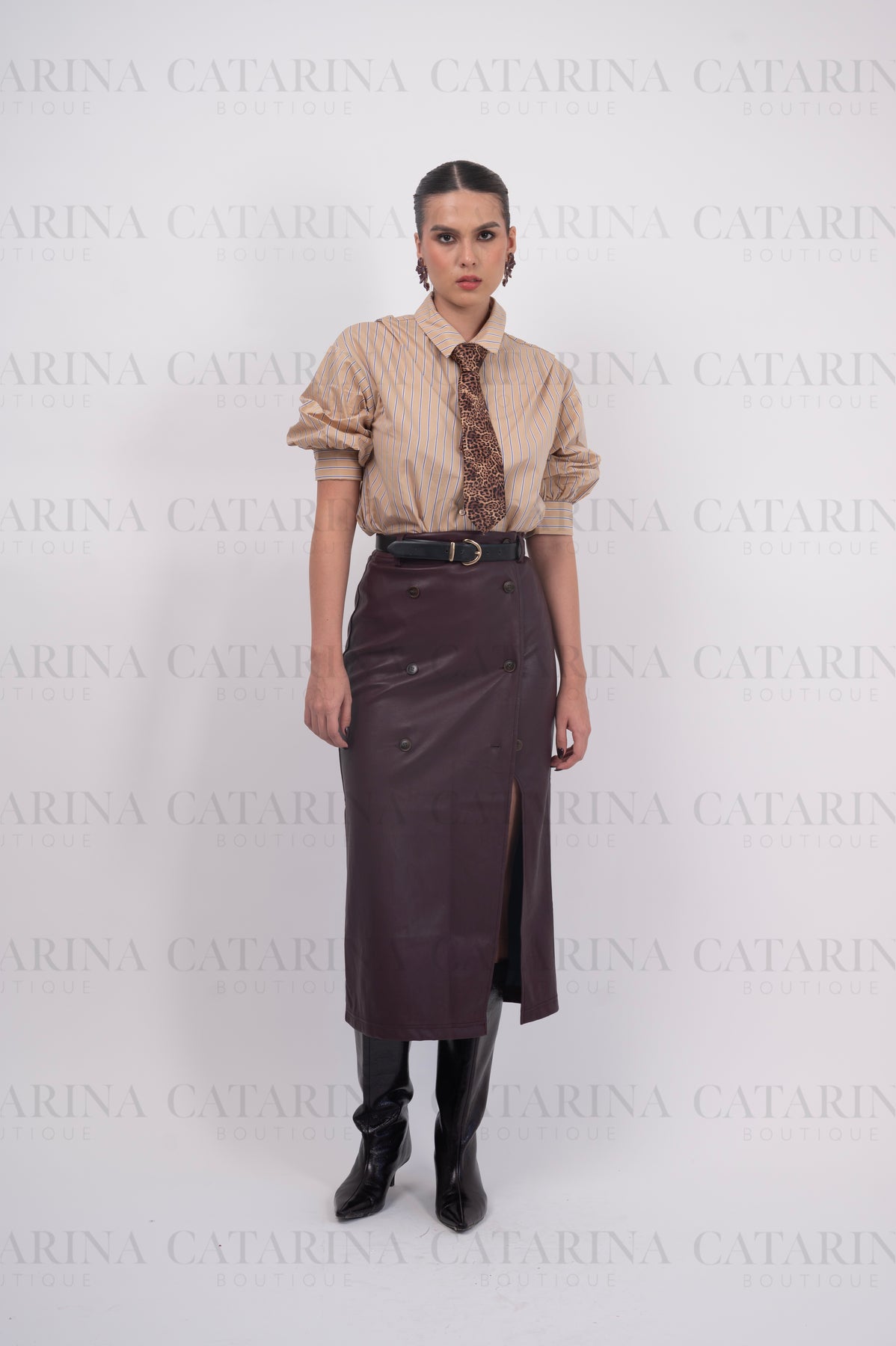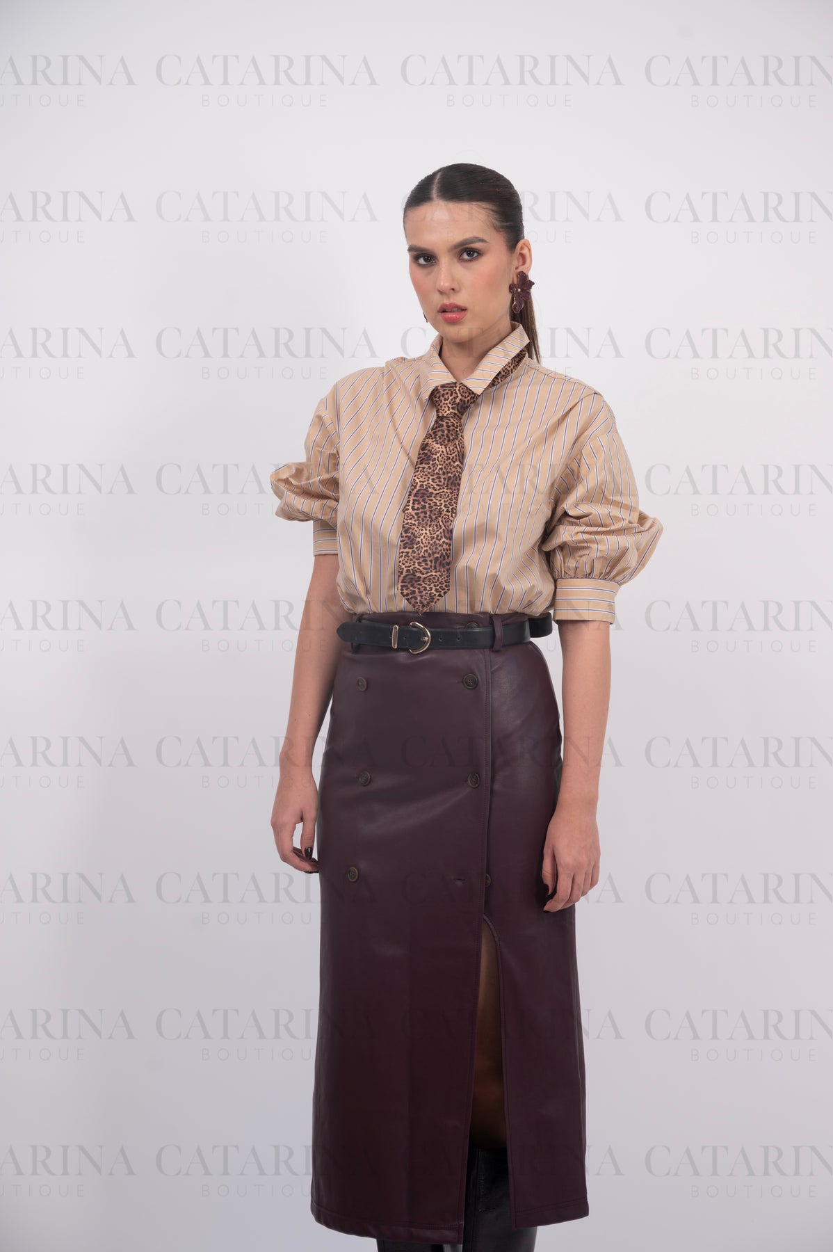 Camisa mangas abullonadas. Cuello tipo americano. Botones al frente. Bajo acabado recto.