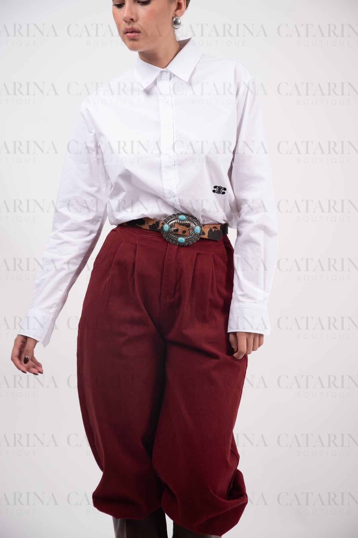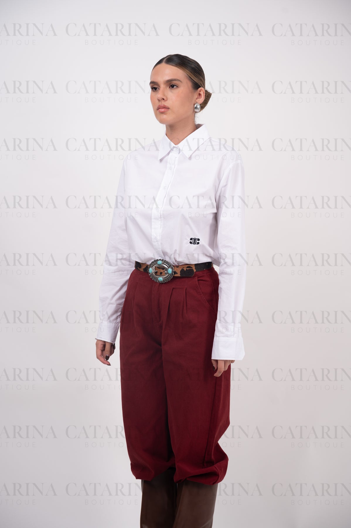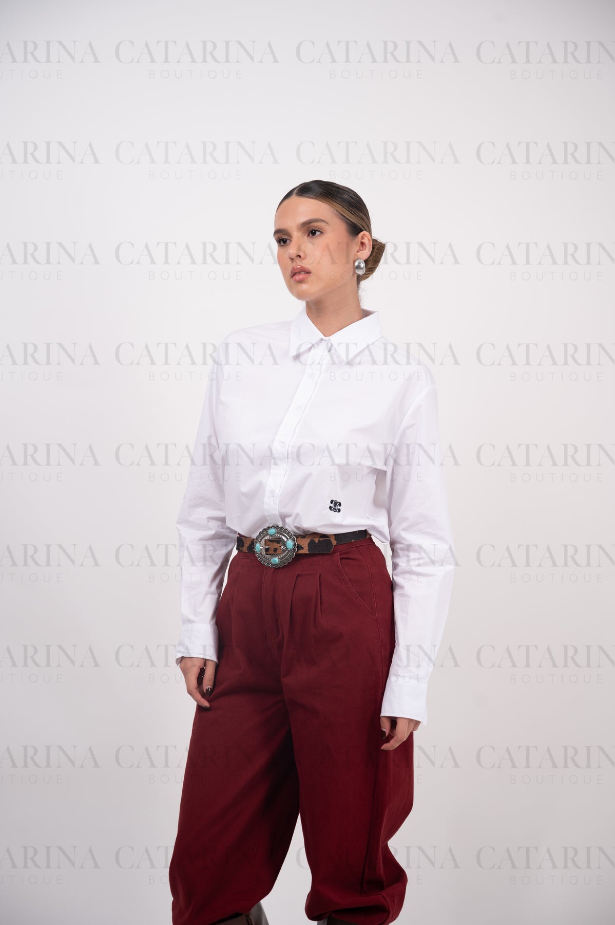 Camisa manga larga. Cuello tipo americano. Botones al frente. Bajo acabado recto.