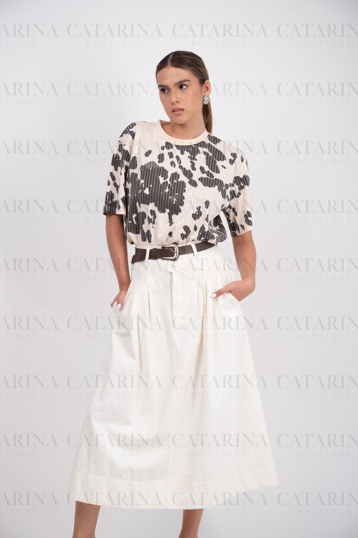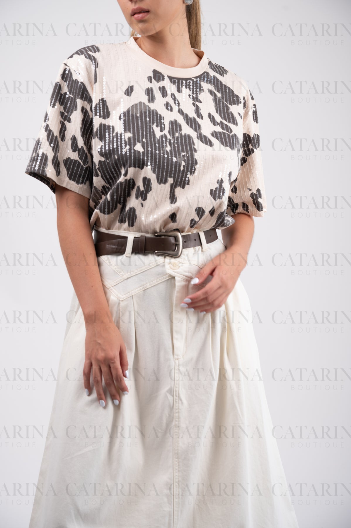 Playera lisa con detalle de estampado. Cuello redondo. Manga corta. Bajo acabado recto.COMPOSICIÓN:100% Poliéster.Material que no se estira ni se encoge.NO INCLUYE ACCESORIOS