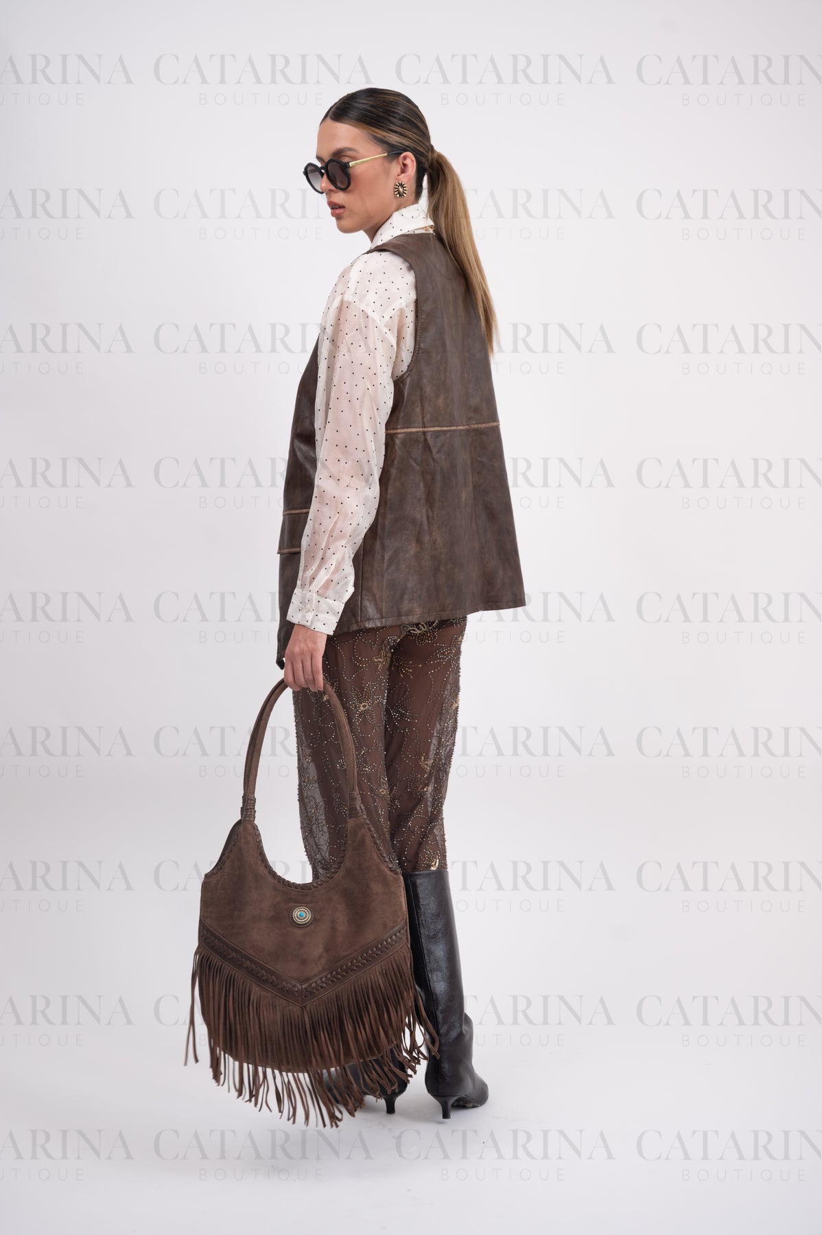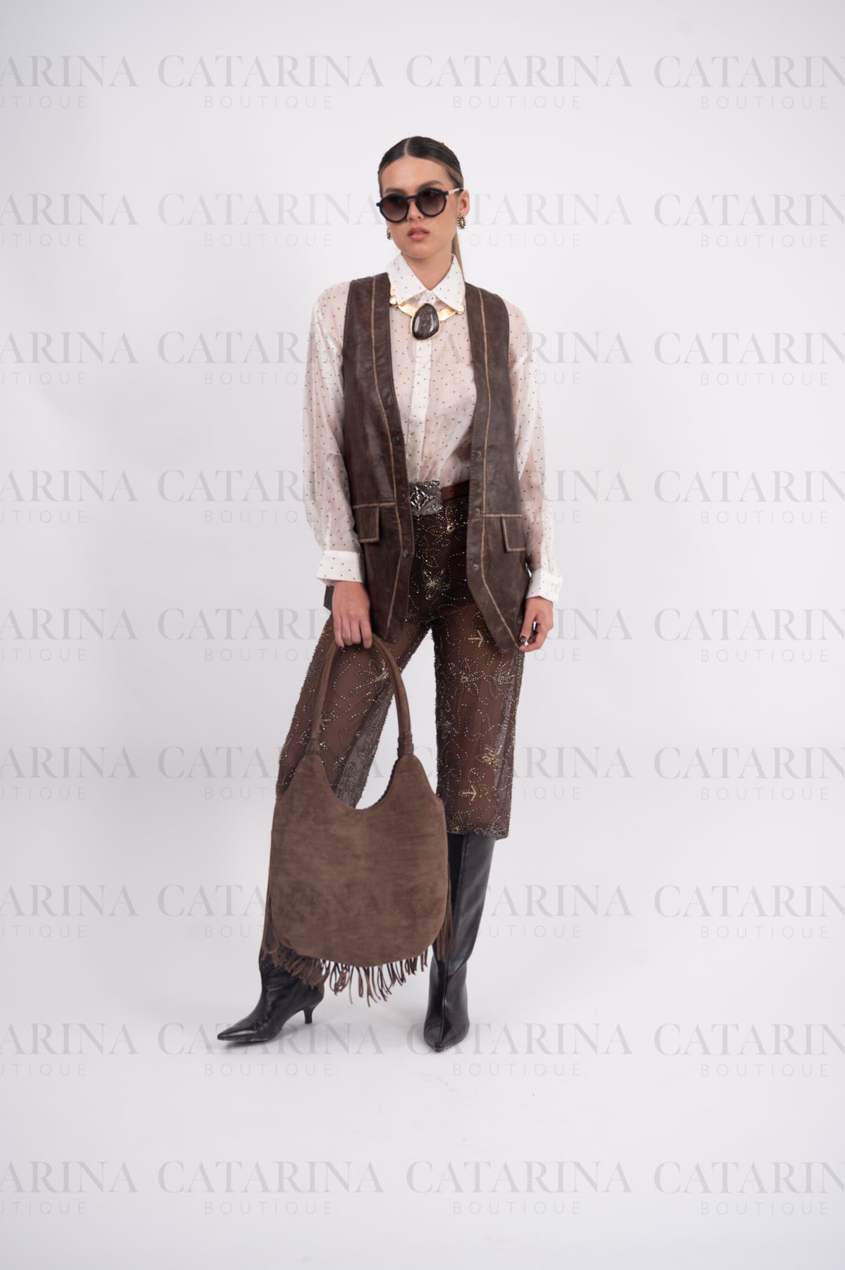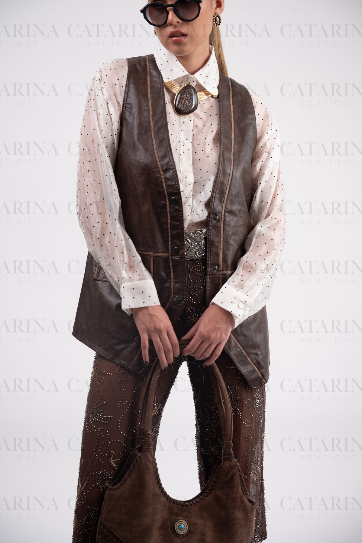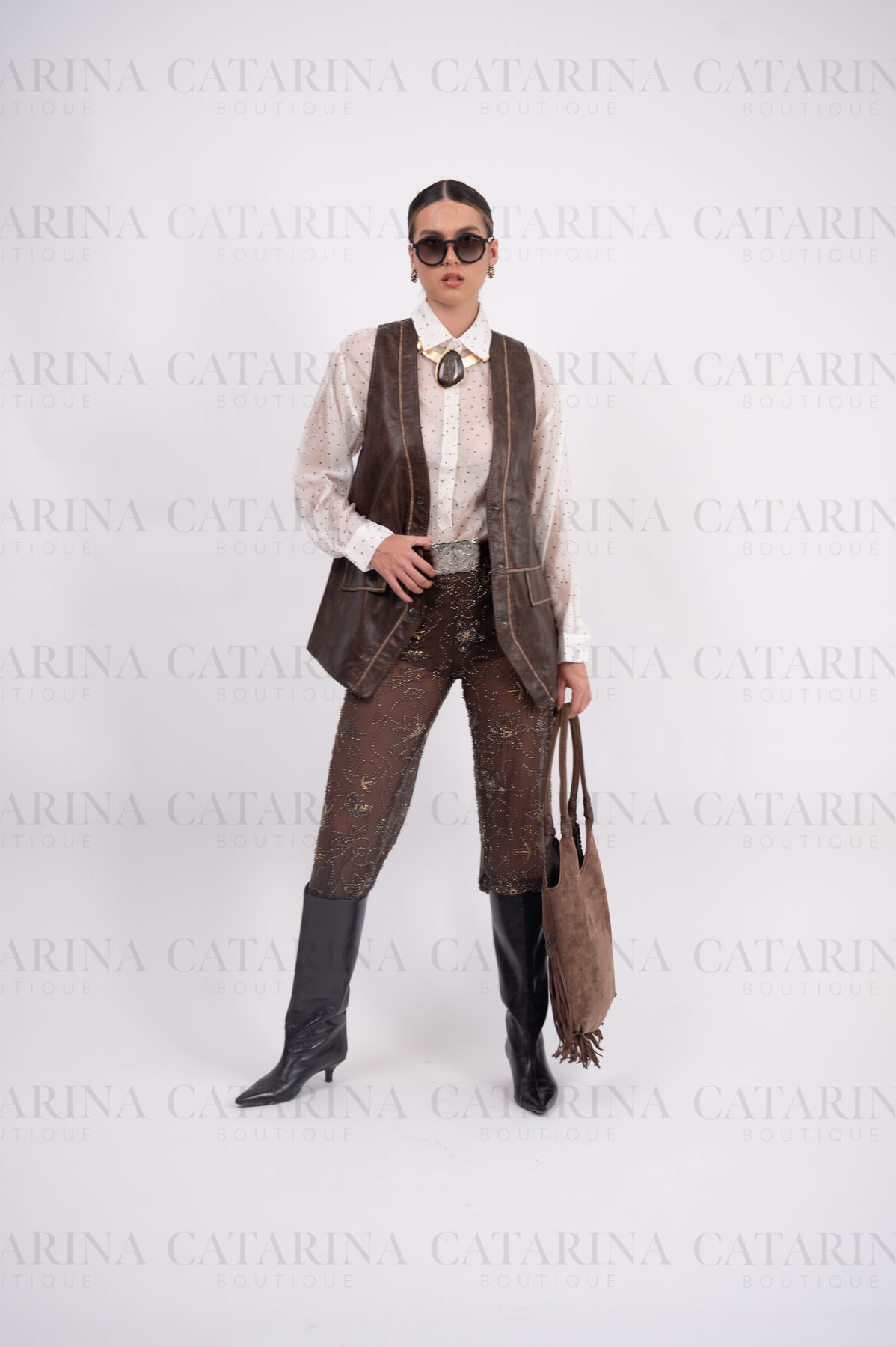 Chaleco con manga tipo sisa. Escote pronunciado. Botones delanteros. COMPOSICIÓN:100% Poliéster.Material que no se estira ni se encoge.*NO INCLUYE ACCESORIOS*
