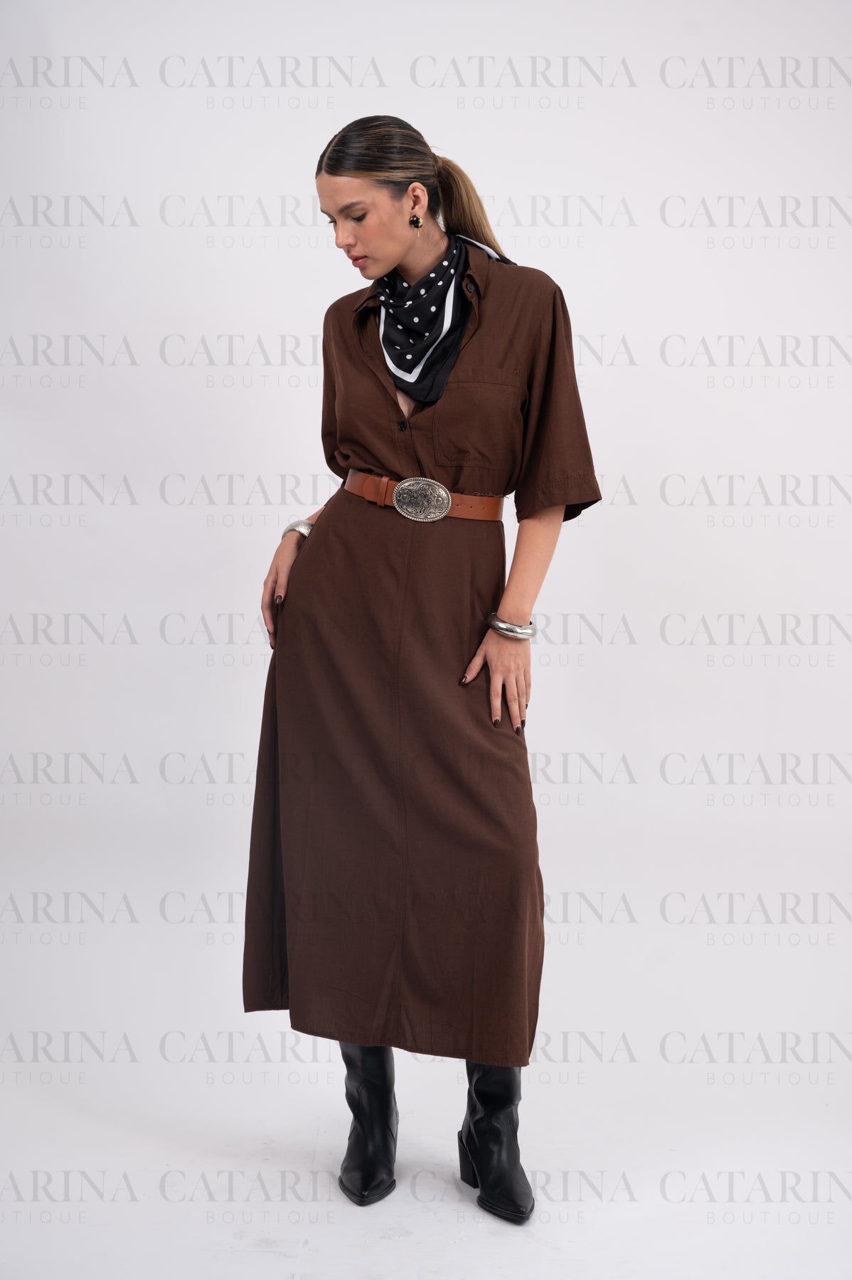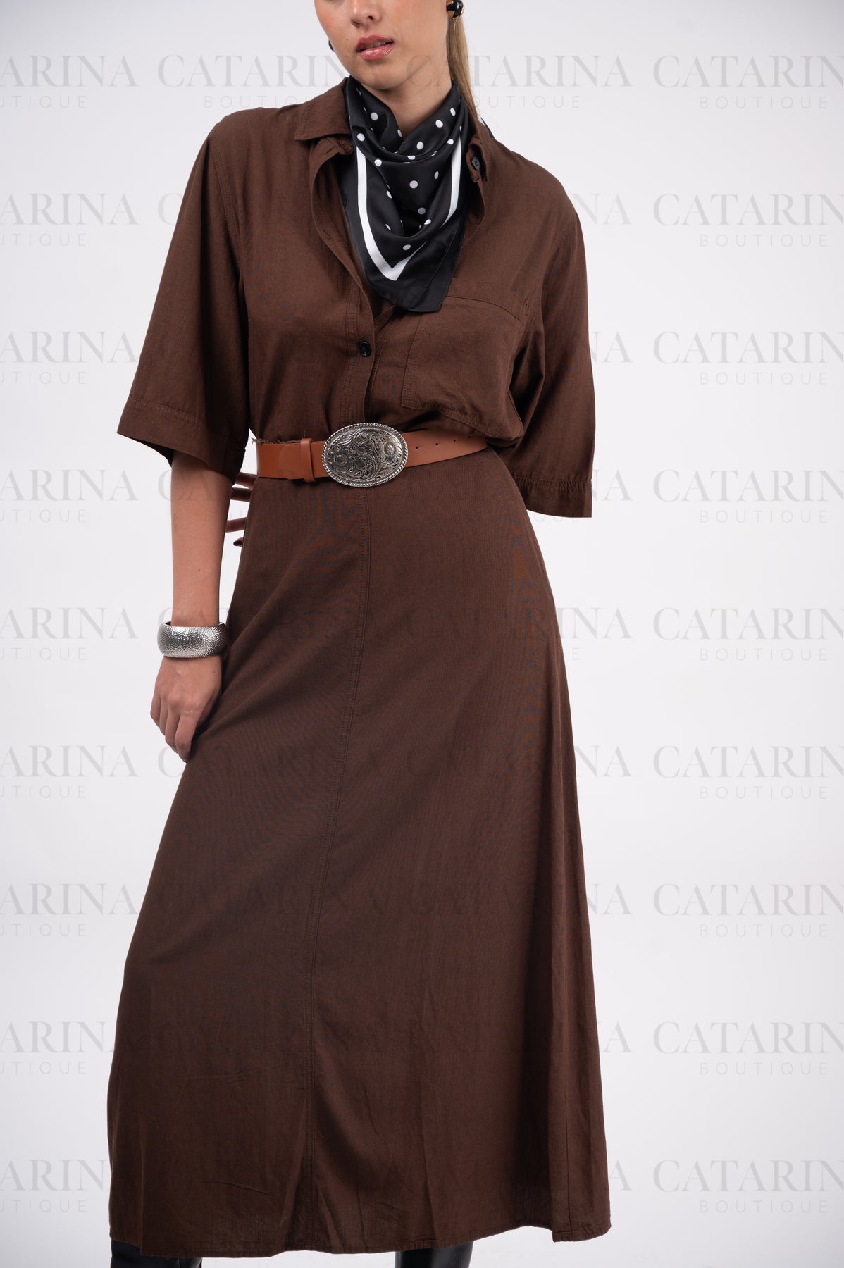Conjunto de camisa y falda. Camisa manga larga. Cuello tipo americano. Botones al frente. Falda de tiro alto. Bajo acabado recto.