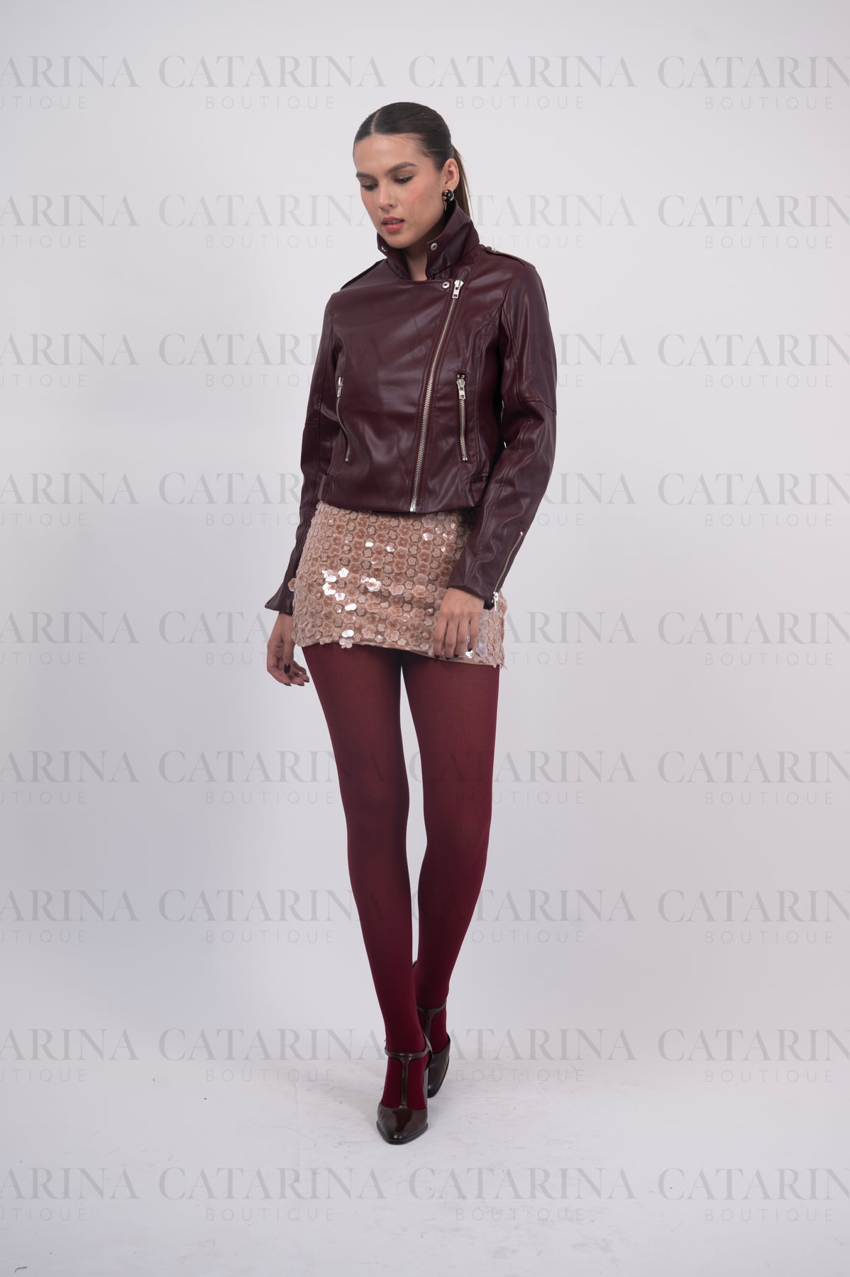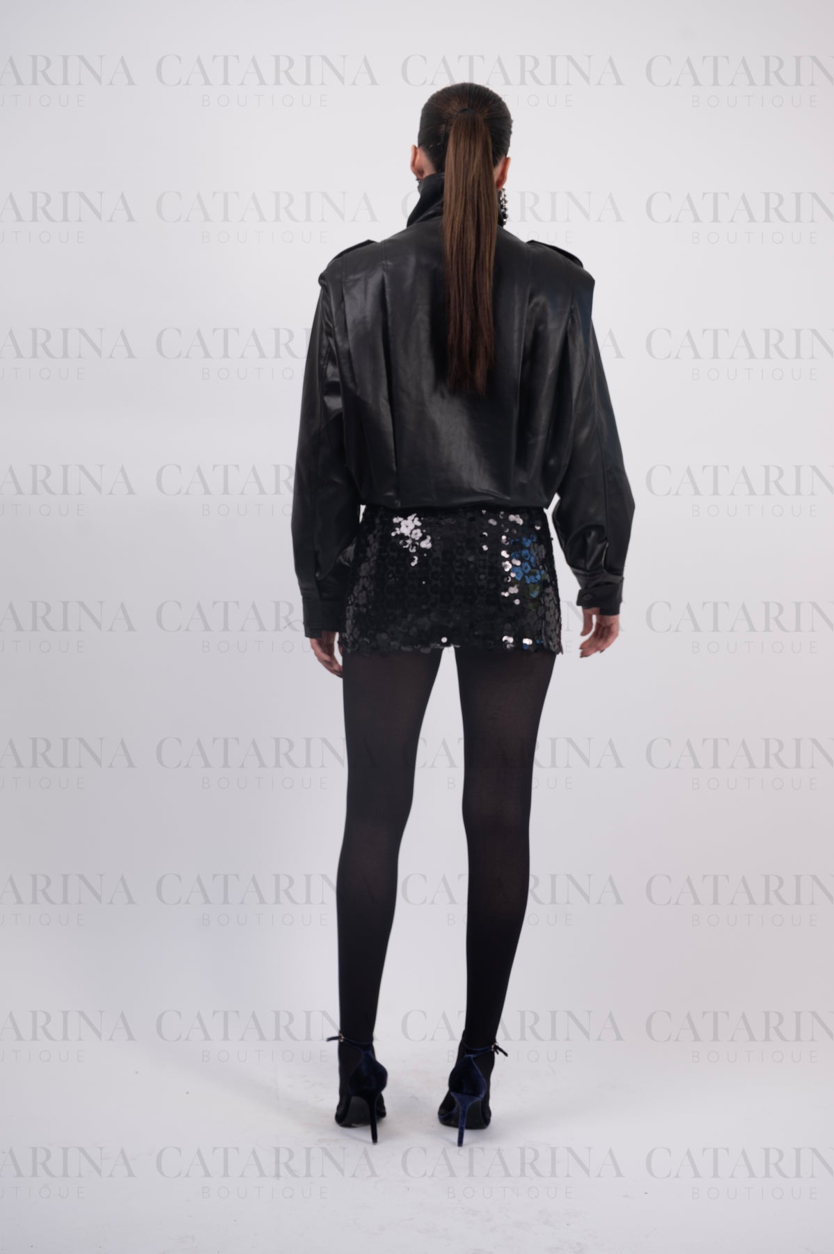 Falda de lentejuela. Elástico en cintura. Bajo acabado recto.