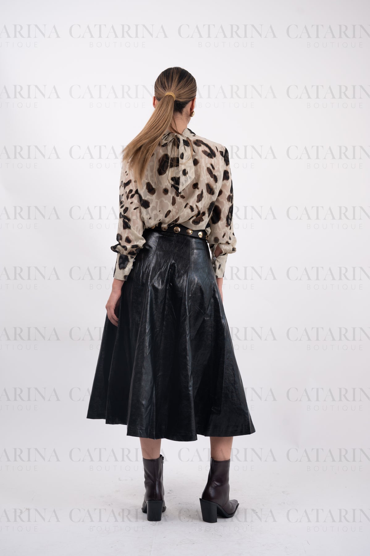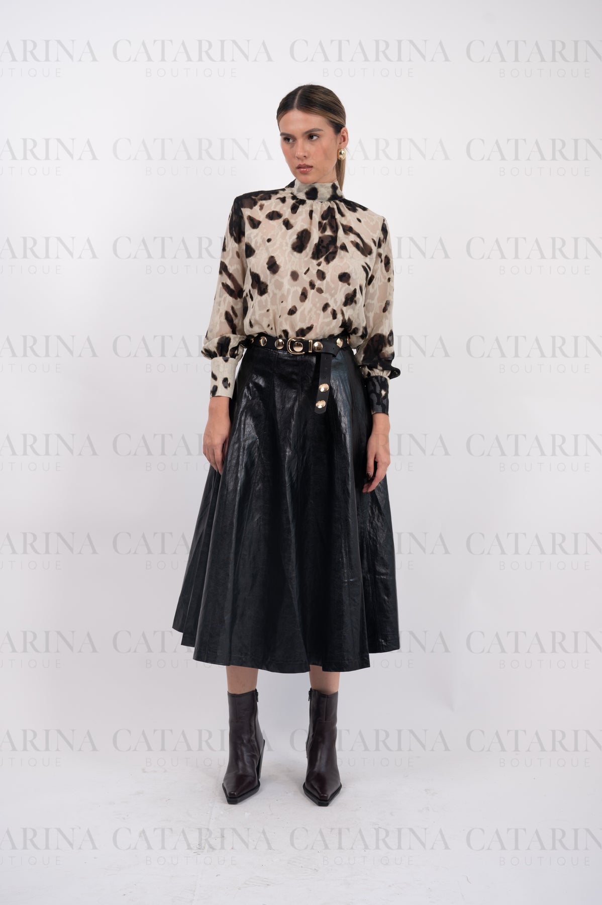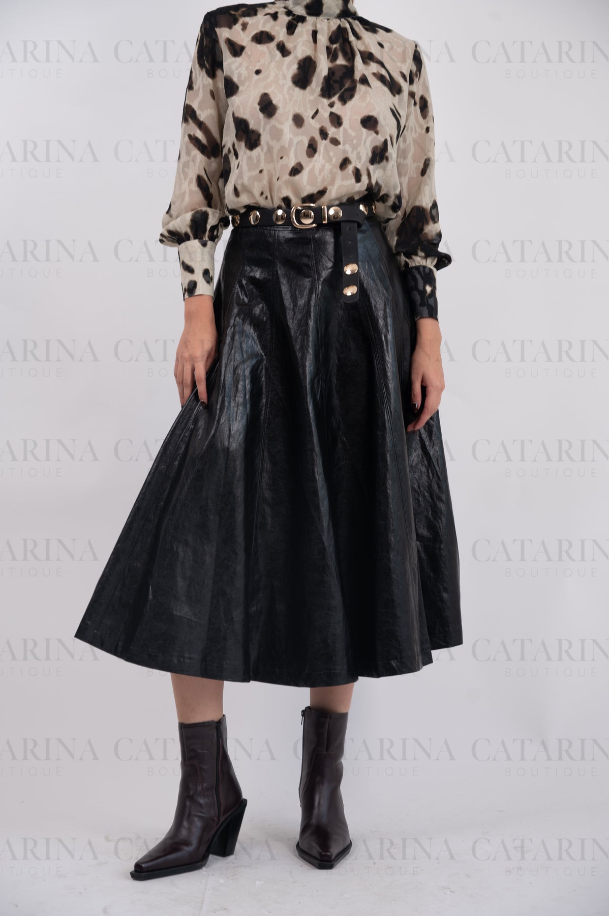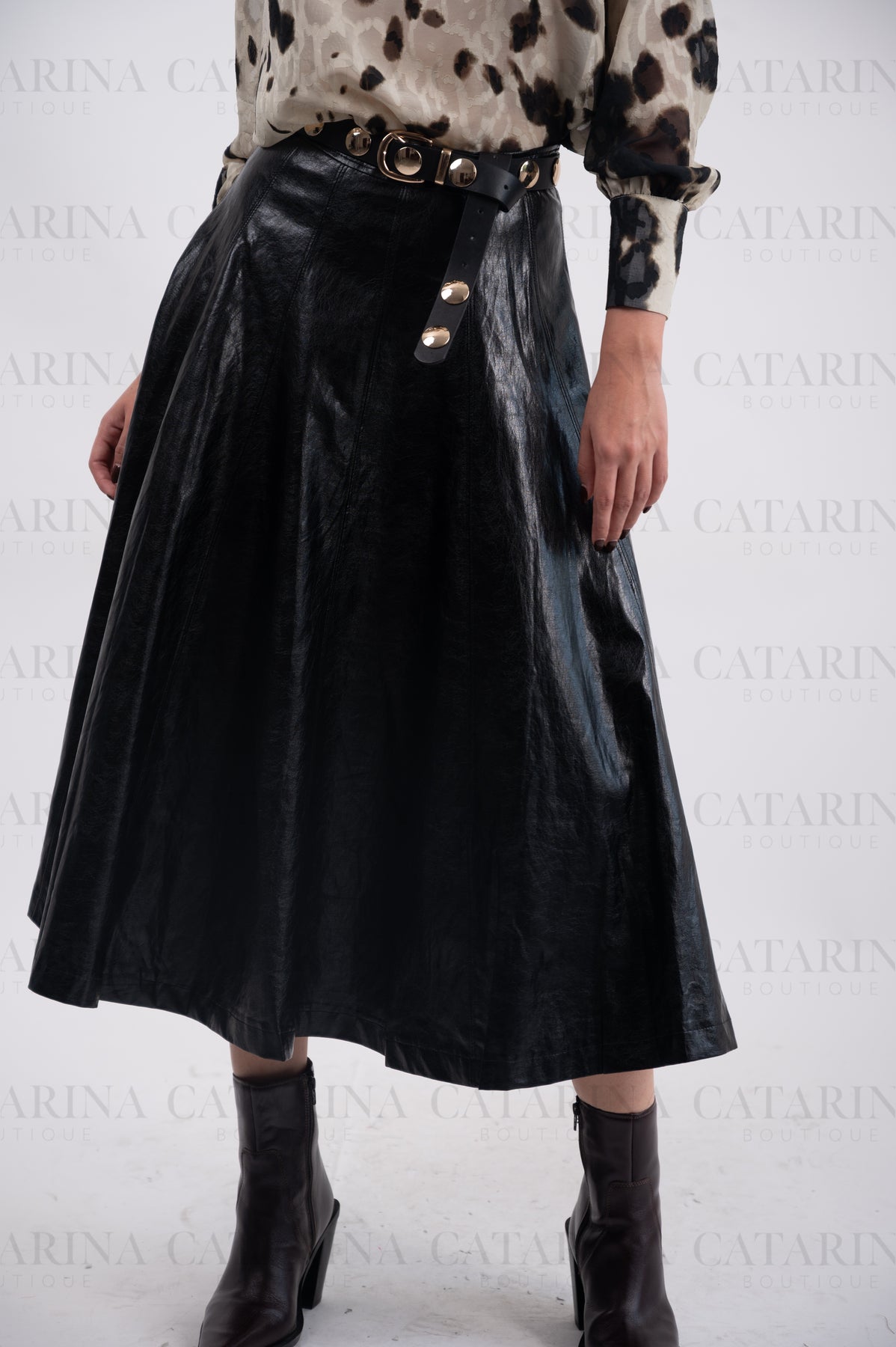Falda de color liso. Bajo acabado circular. Cierre oculto.