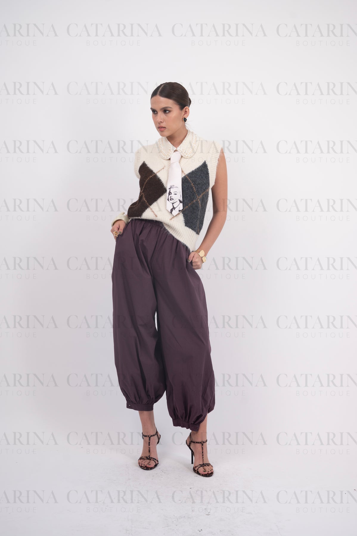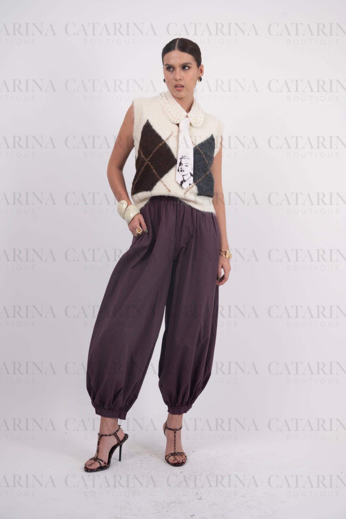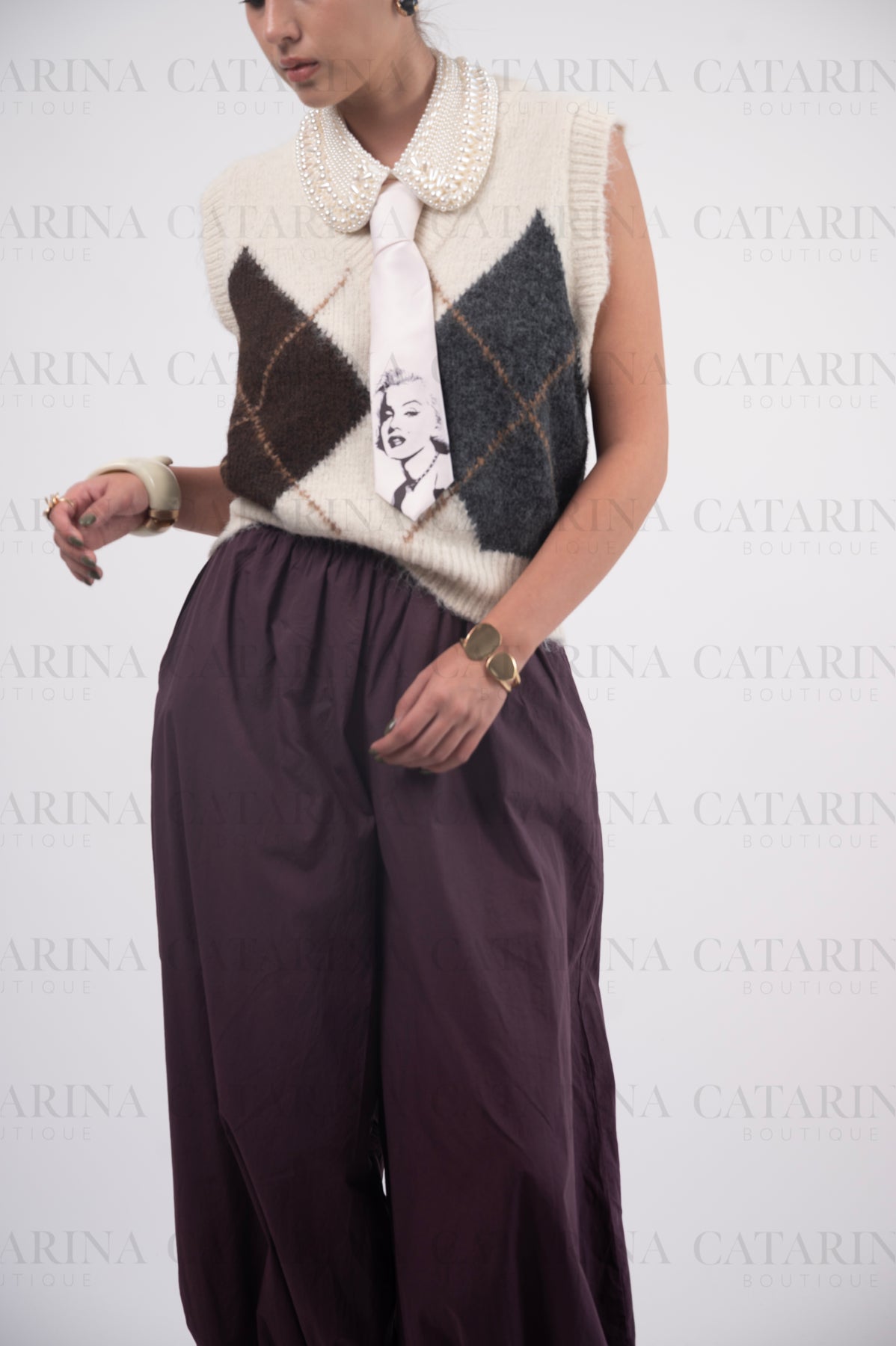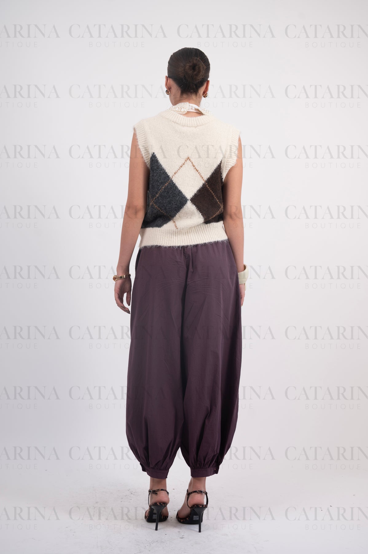 Chaleco con estampado Argyle con rombos grandes. Cuello en v. Bajo acabado recto.