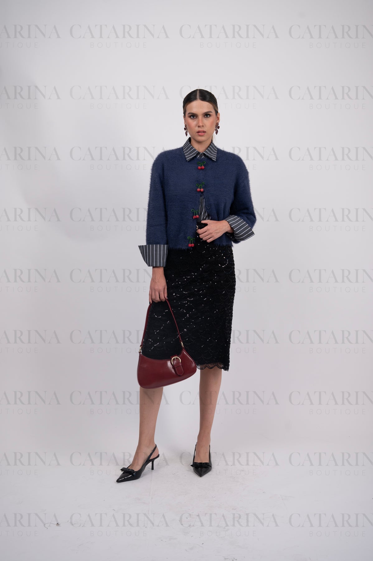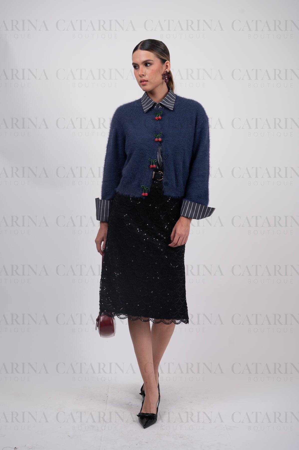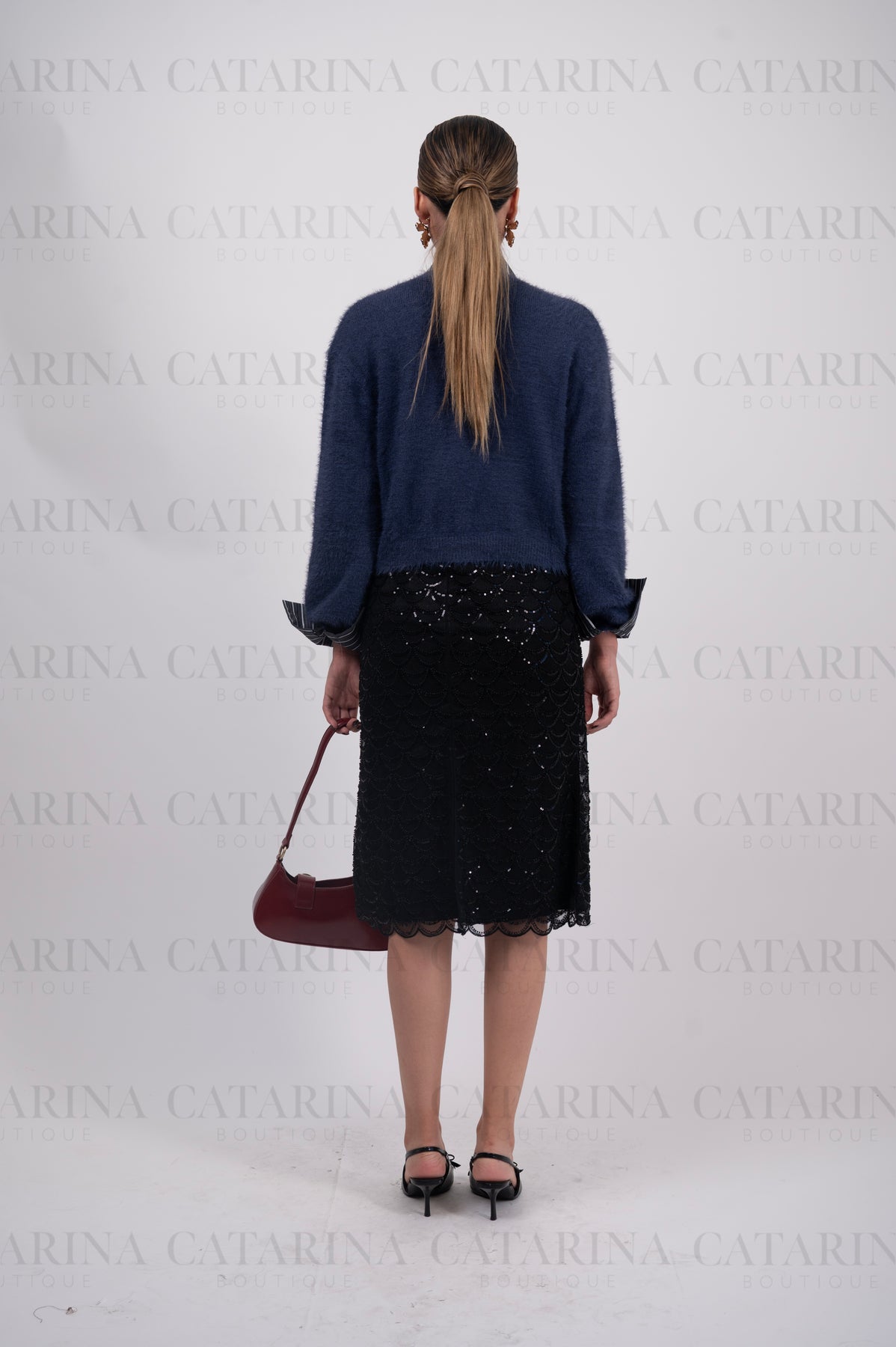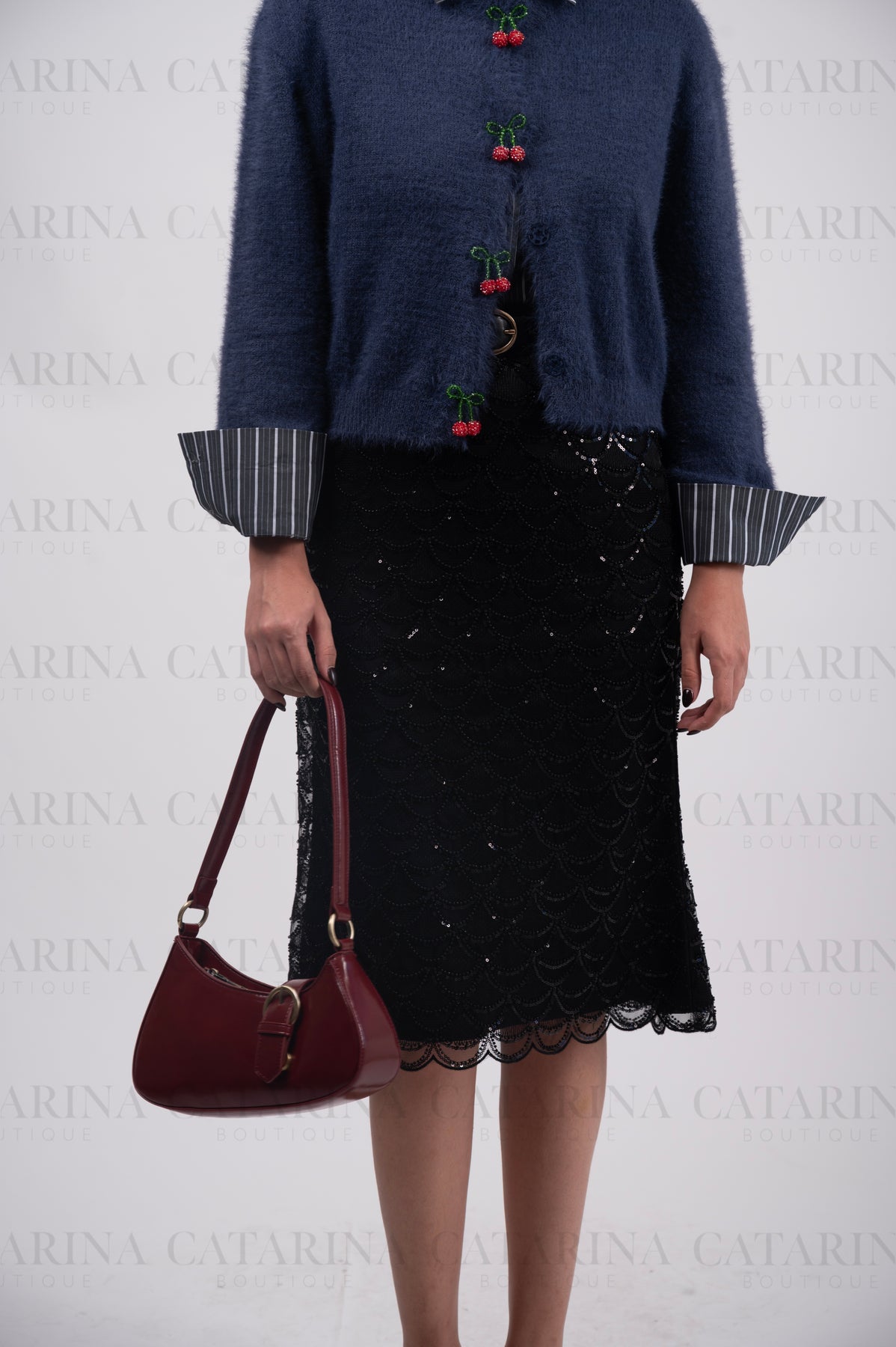 Falda de corte recto, en color negro. La cintura es ancha y elástica, asegurando un ajuste cómodo.