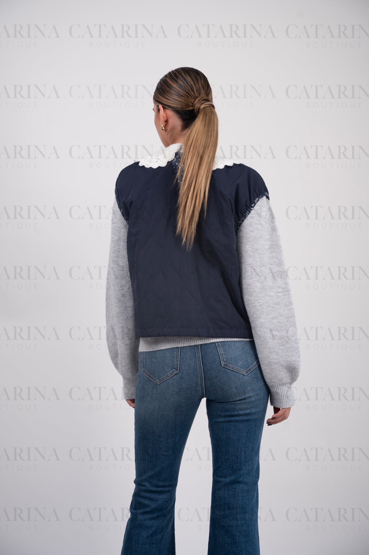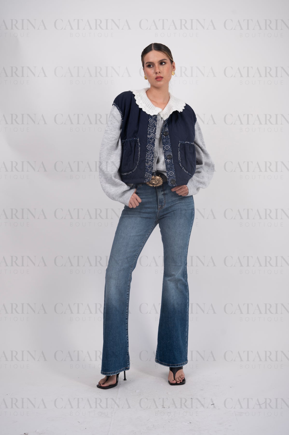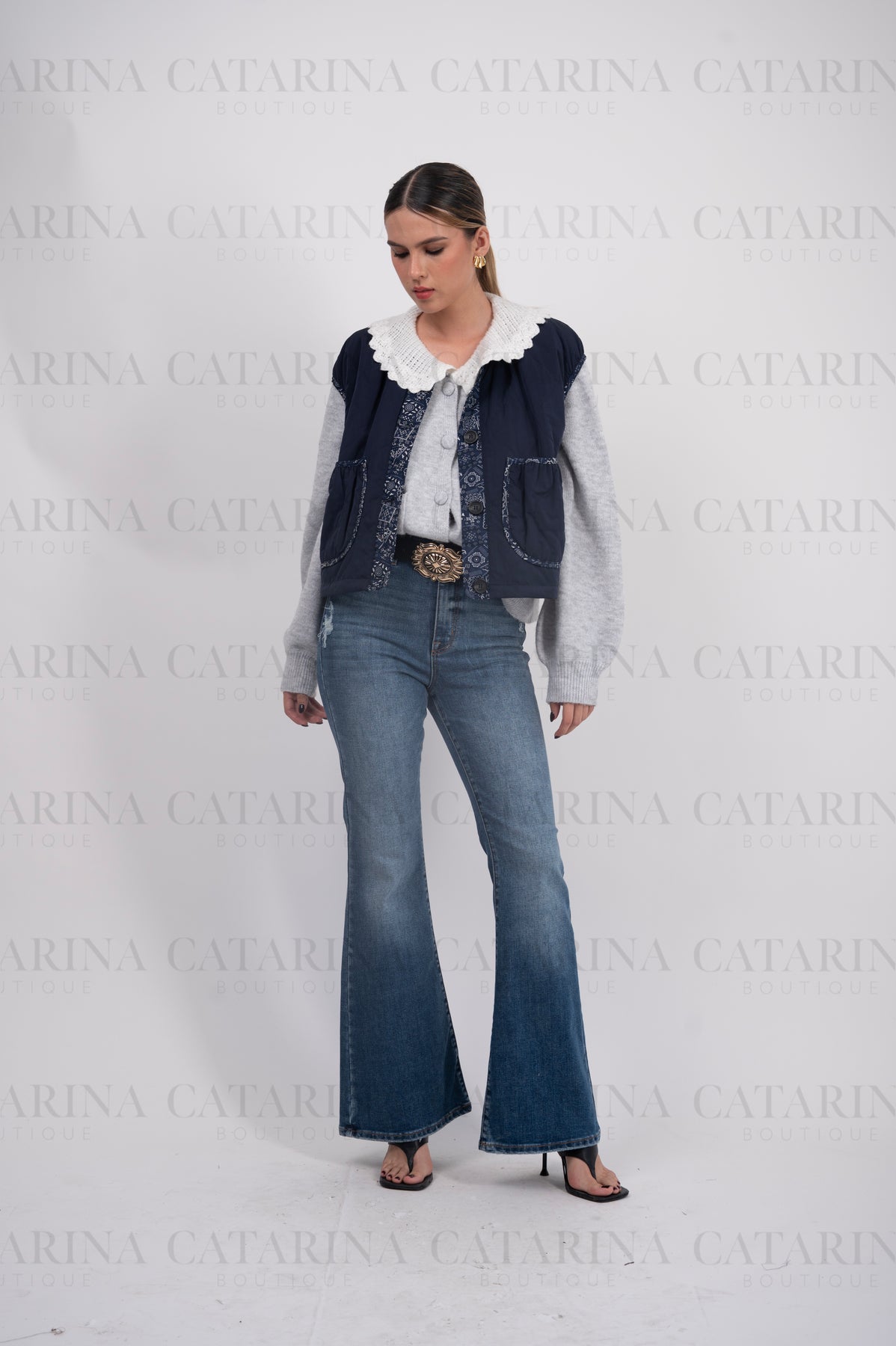 Pantalón de tiro alto. Bolsillos traseros y a los costados. Botón y cierre delantero con cremallera.