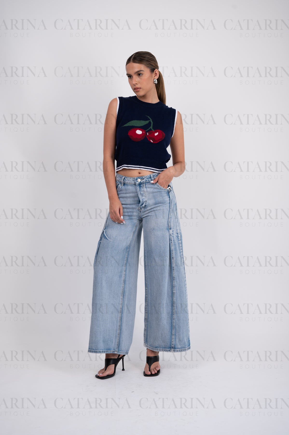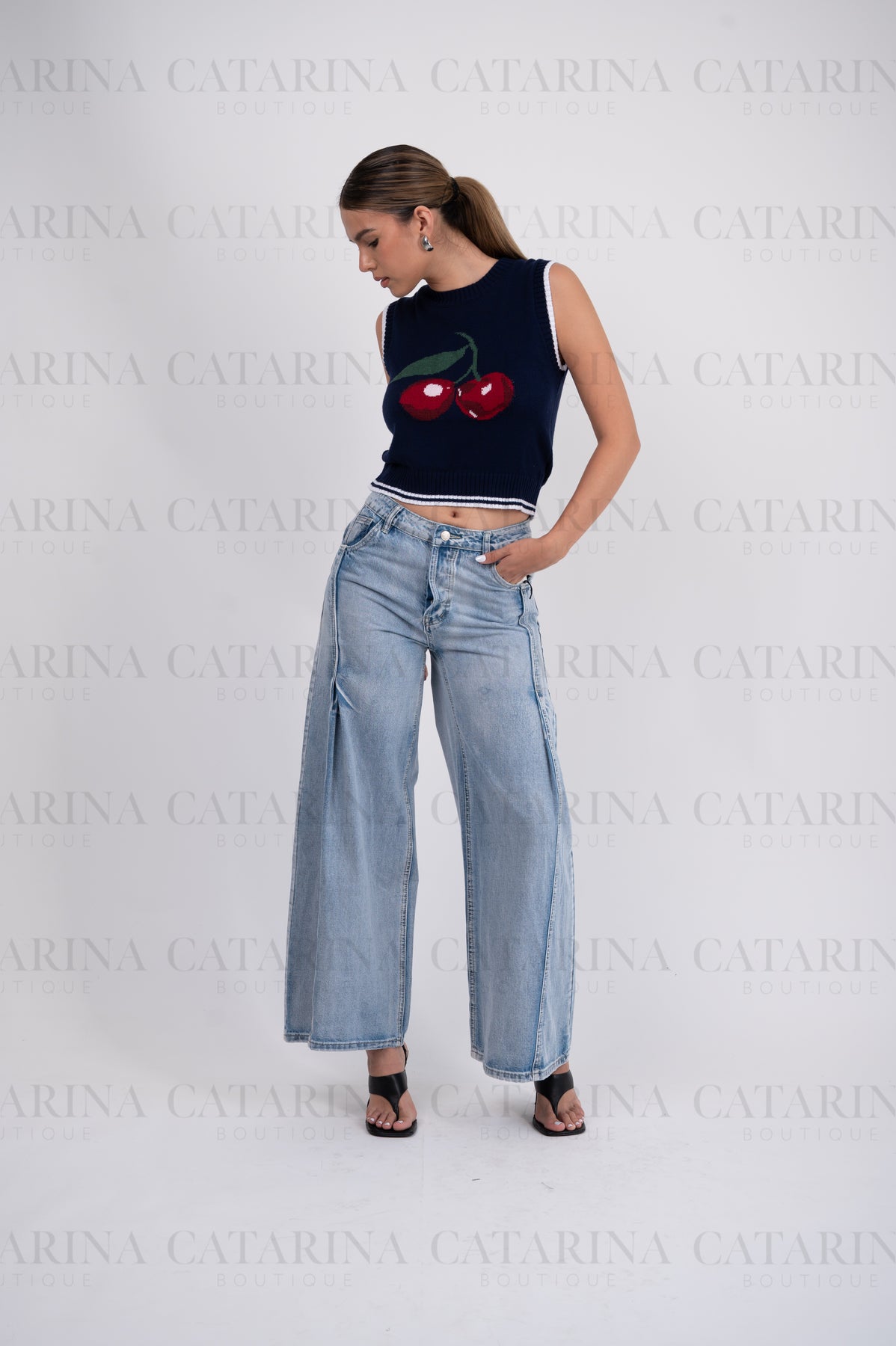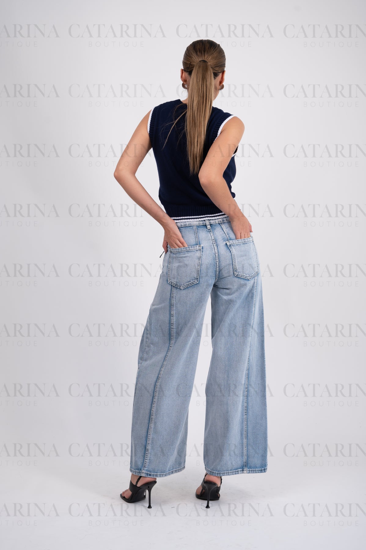 Pantalón de tiro alto. Botón y cierre delantero con cremallera. Bajo acabado recto.