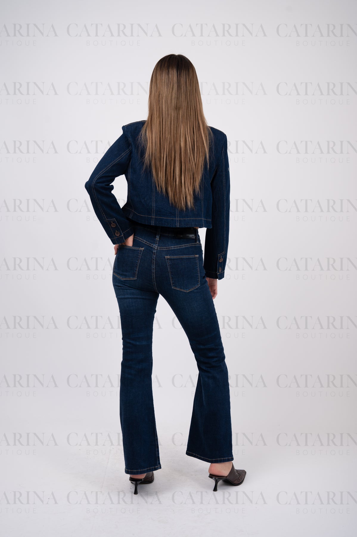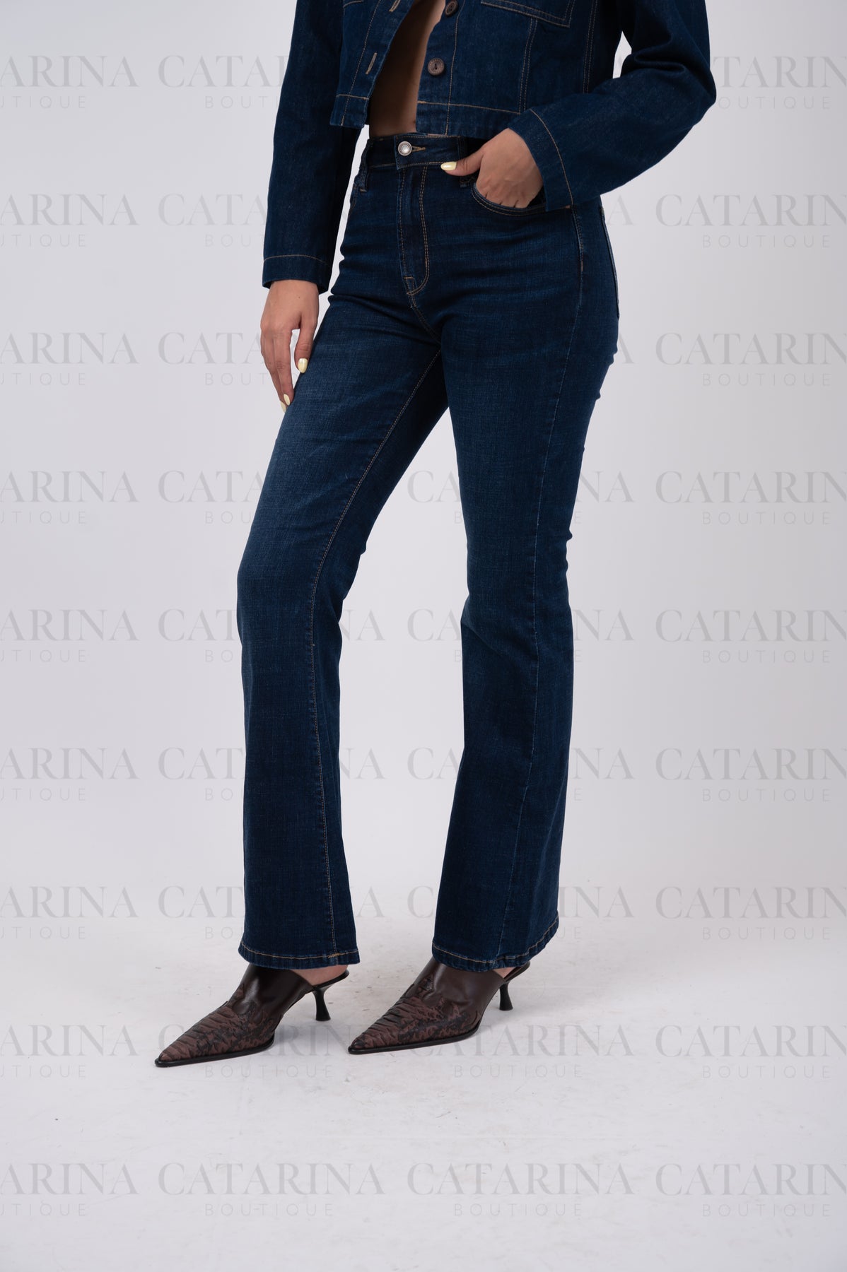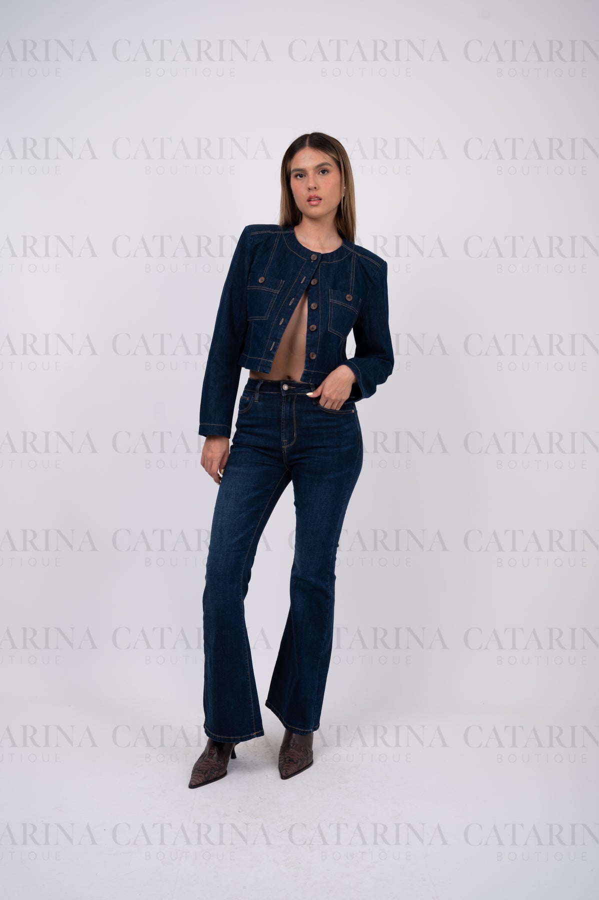 Pantalón de tiro alto. Bolsillos  a los costados. Botón y cierre delantero con cremallera. Bajo acabado recto.