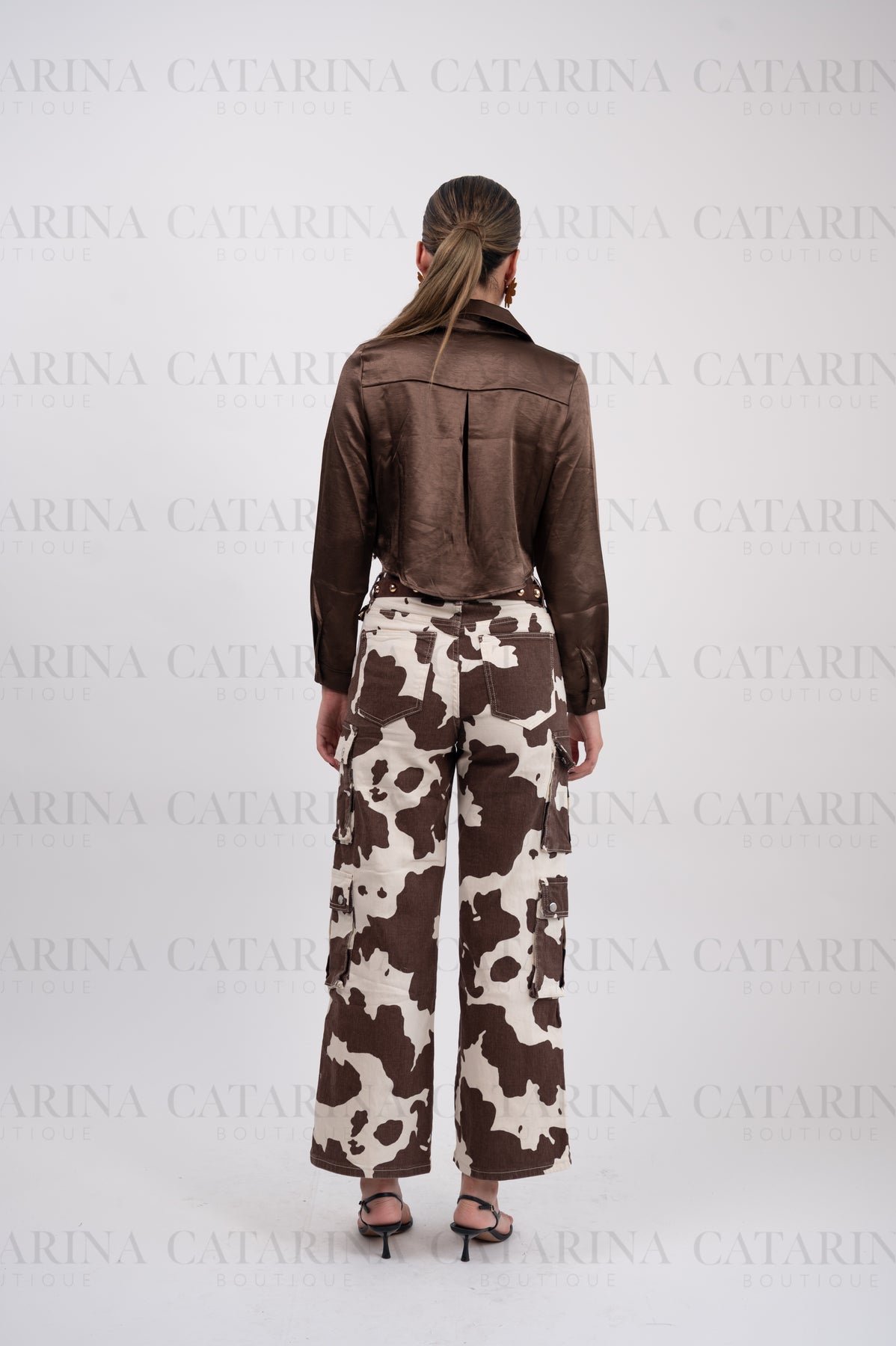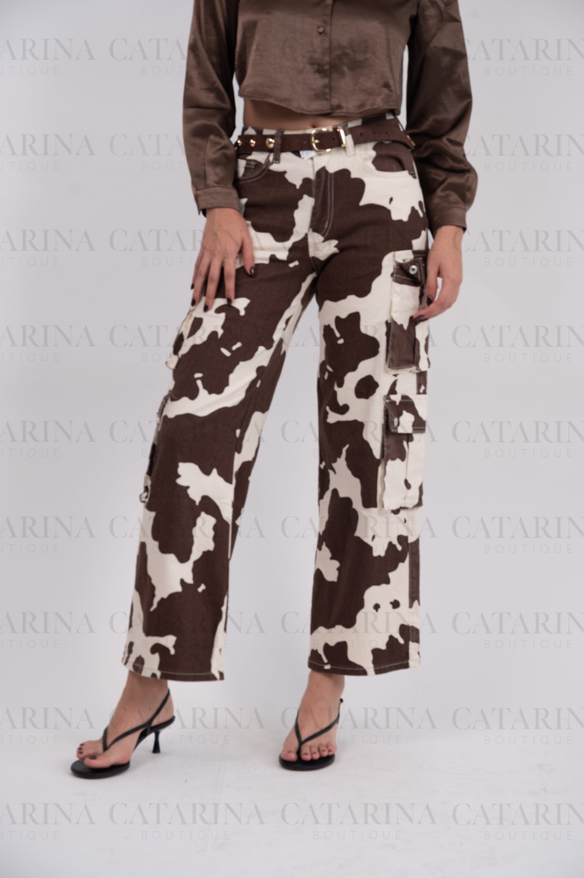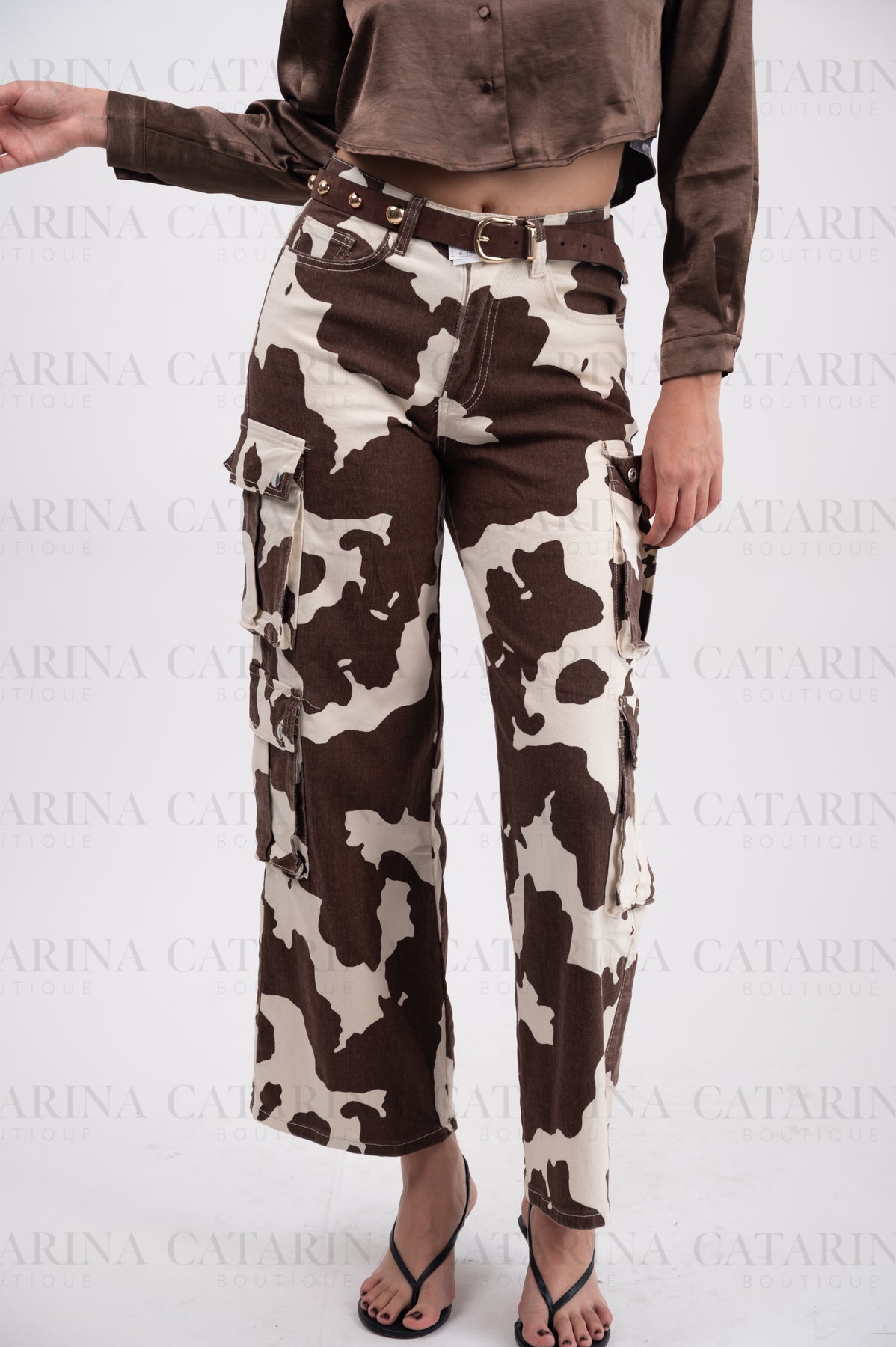 Pantalón de tiro alto. Bolsillos delanteros y a los costados. Botón y cierre delantero con cremallera. Bajo acabado recto.