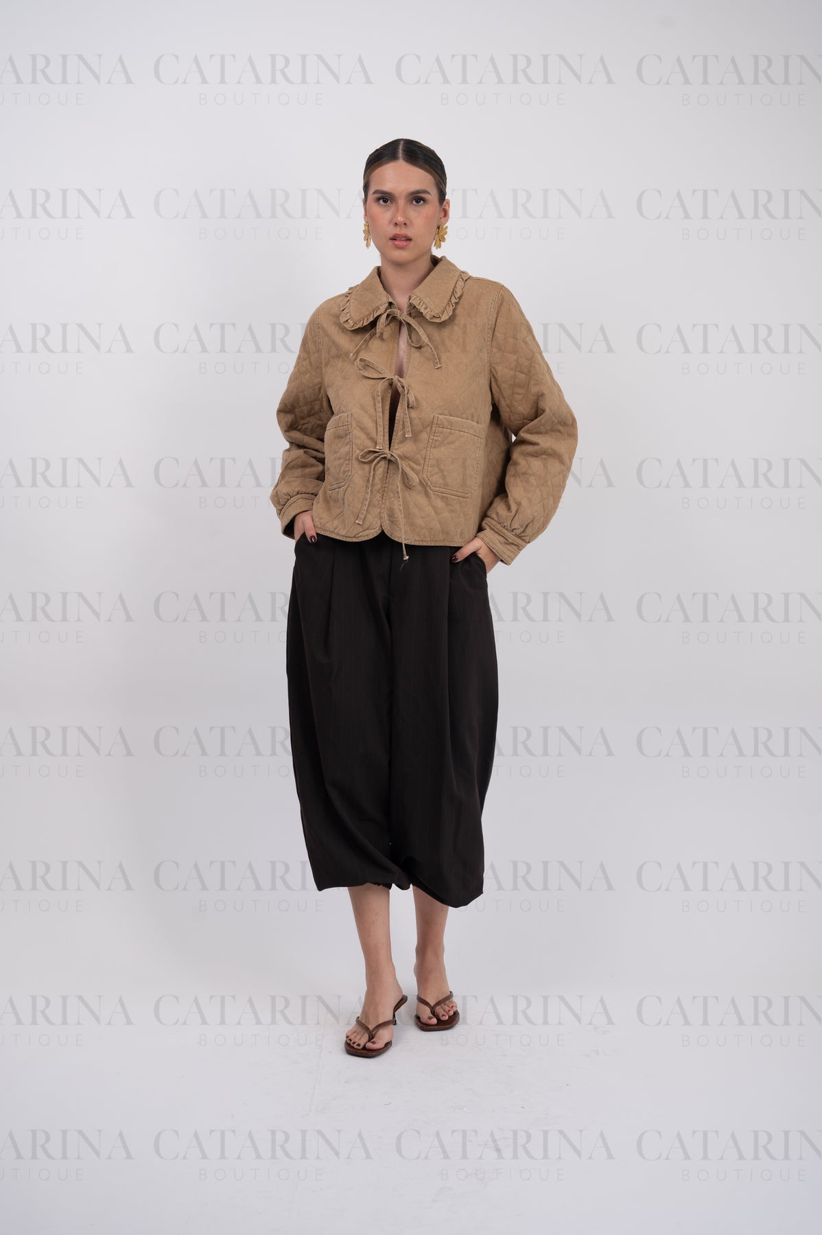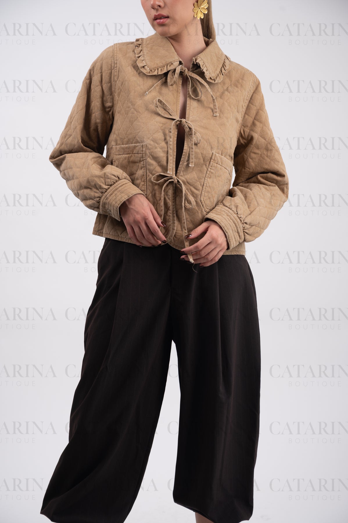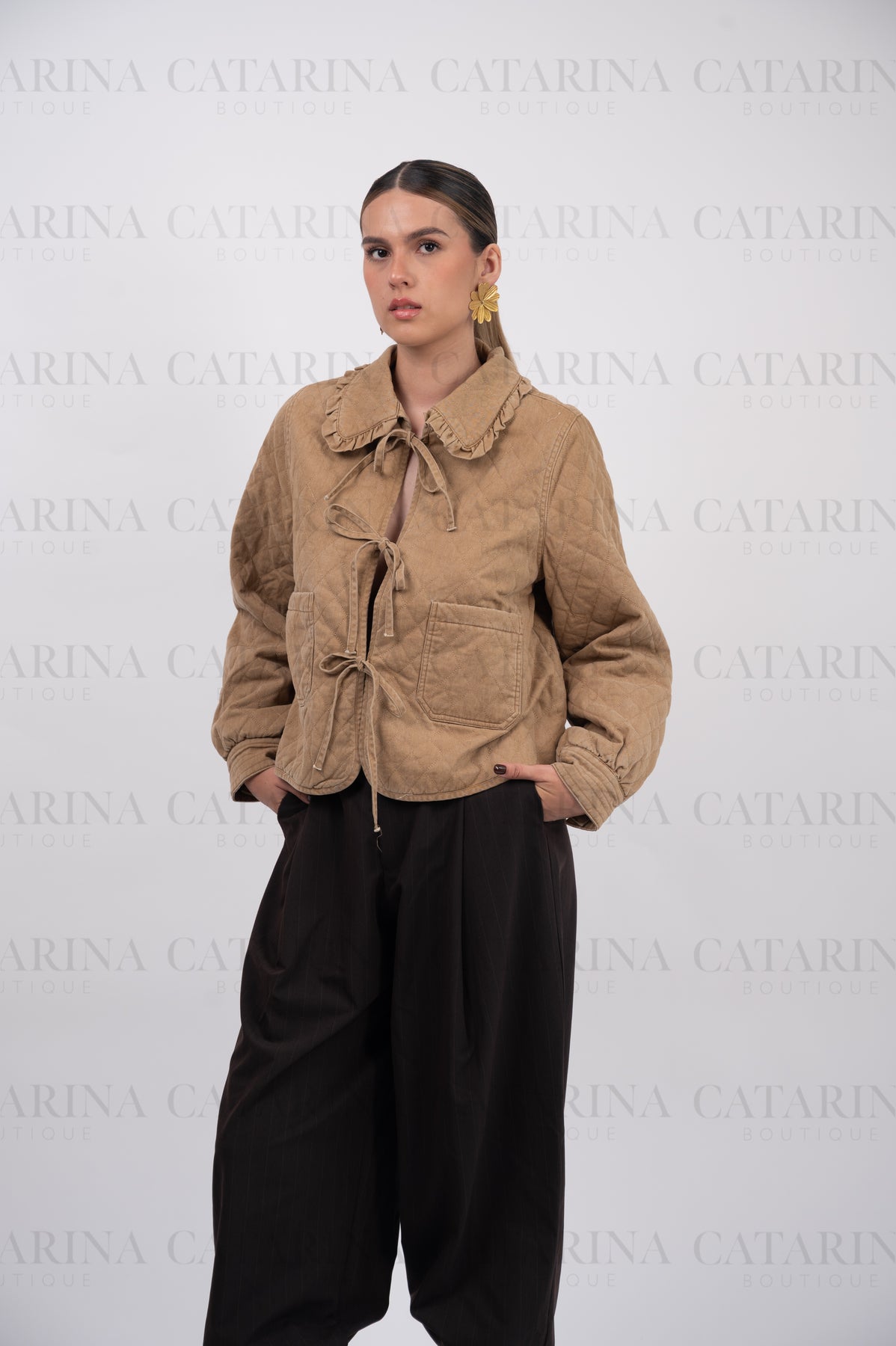 Chamarra de cuello y solapa manga larga. Lazadas ajustables y bolsillos delanteros. Color liso. Bajo acabado recto. COMPOSICIÓN:100% Poliéster.Material que no se estira ni se encoge.NO INCLUYE ACCESORIOS