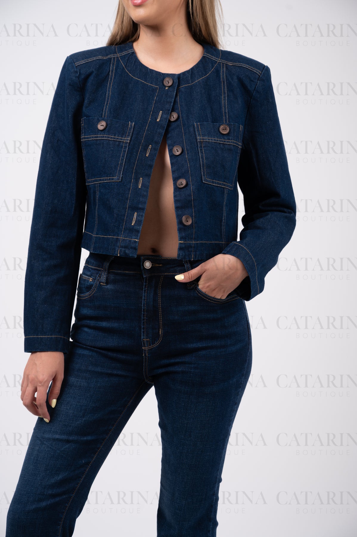 Chaqueta de cuello redondo. Manga larga. Botones y bolsillos delanteros. Color liso. Bajo acabado recto. COMPOSICIÓN:100% Poliéster.Material que no se estira ni se encoge.NO INCLUYE ACCESORIOS