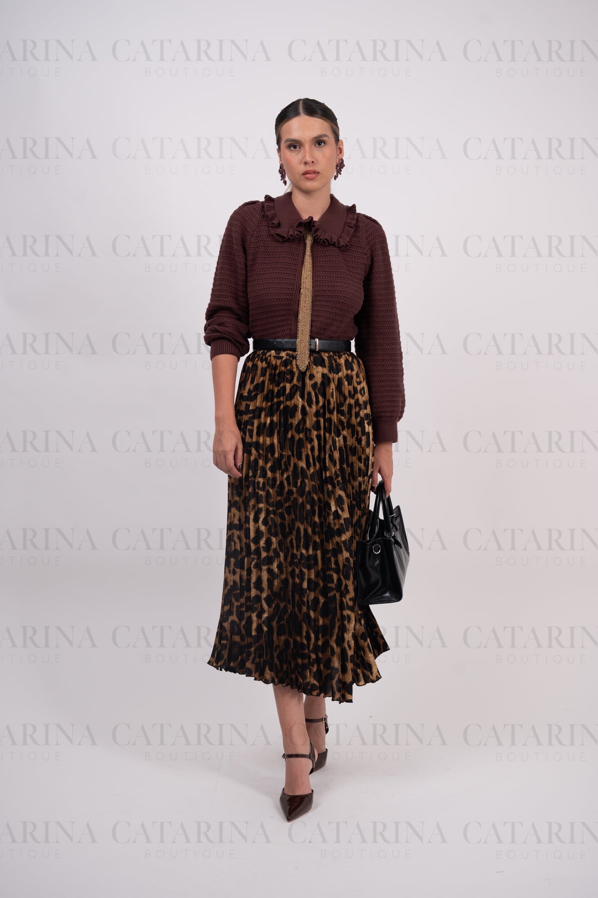 Suéter de cuello cuadrado. Manga larga. Botones delanteros. Color liso. Bajo acabado recto.
