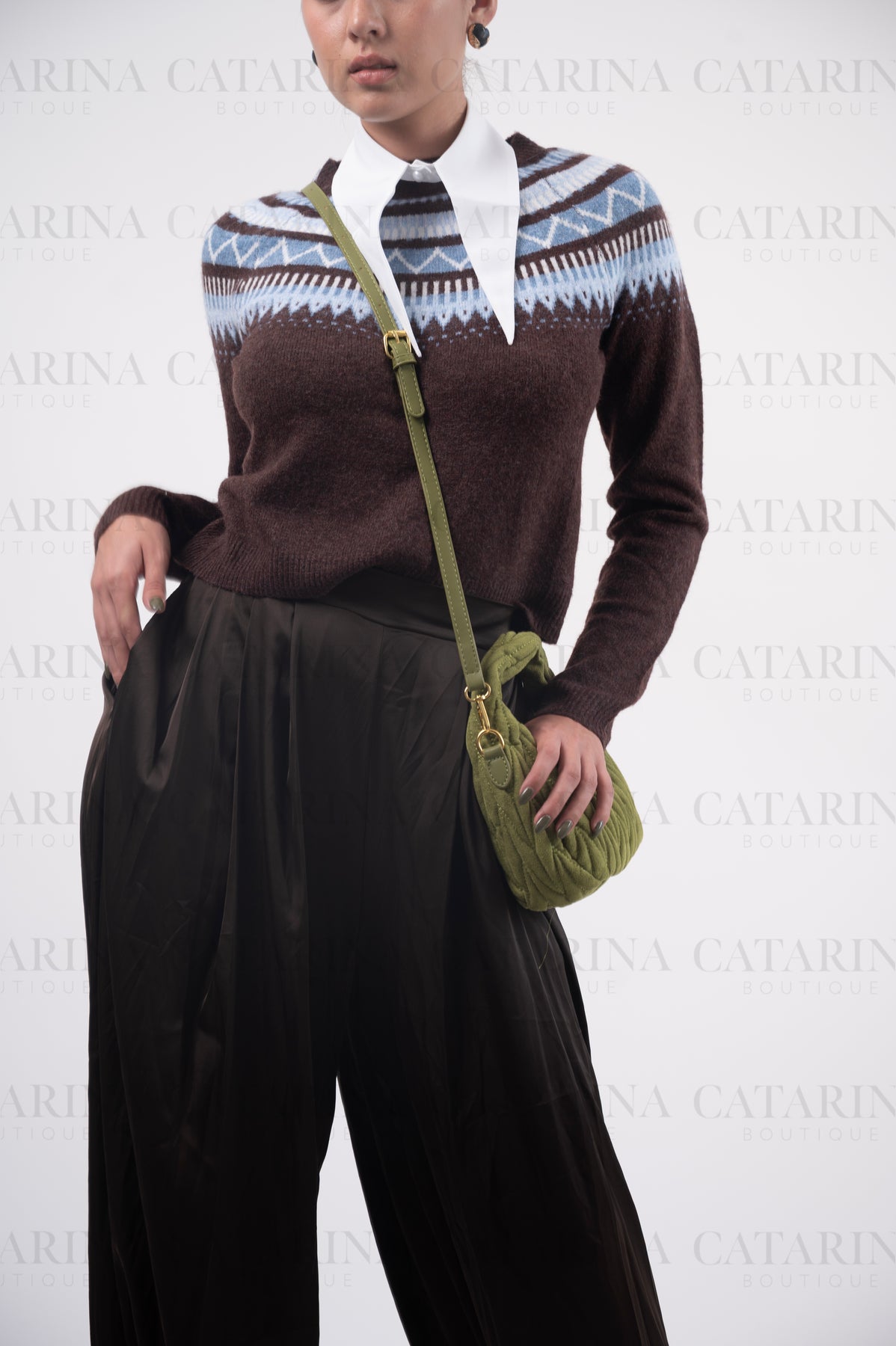 Suéter ligero. Manga larga. Cuello redondo. Bajo acabado recto.