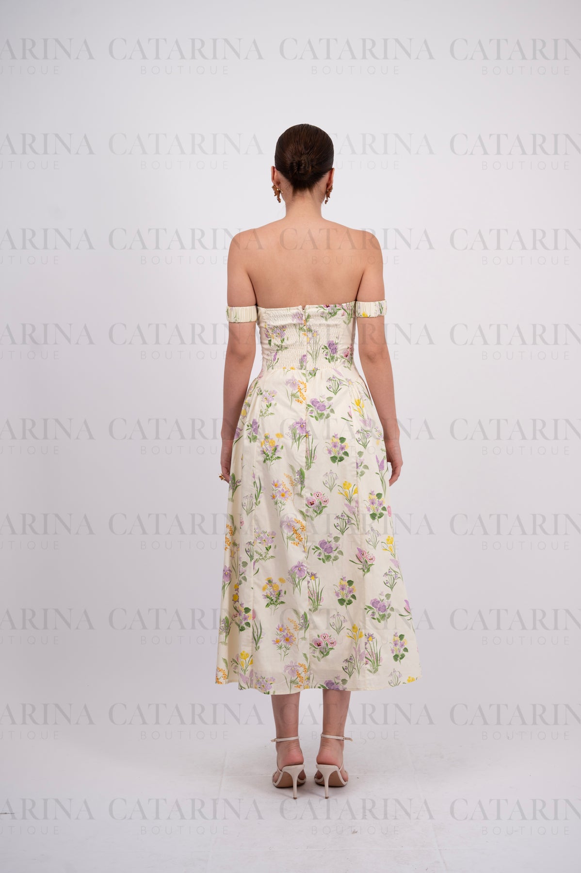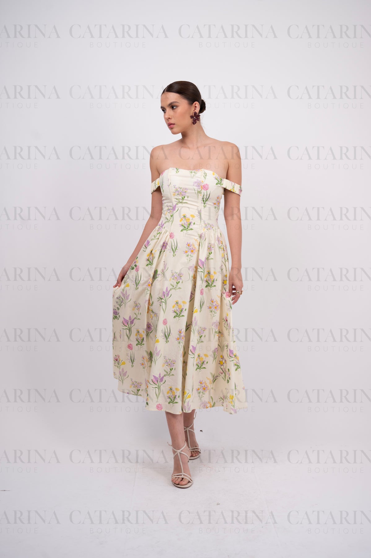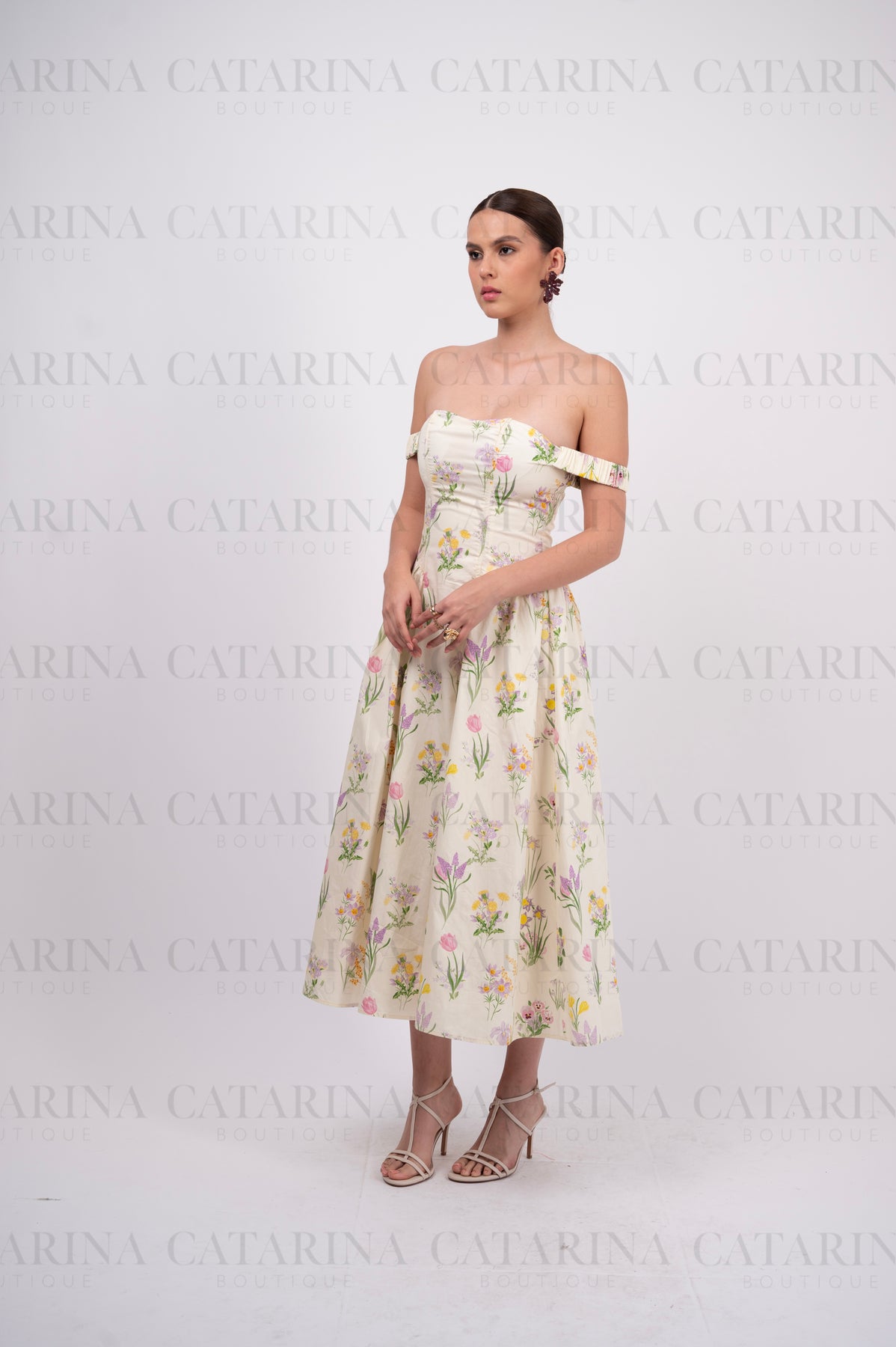 Vestido con estampado floral. Escote recto. Tirantes delgados con caida.. Bajo acabado recto.