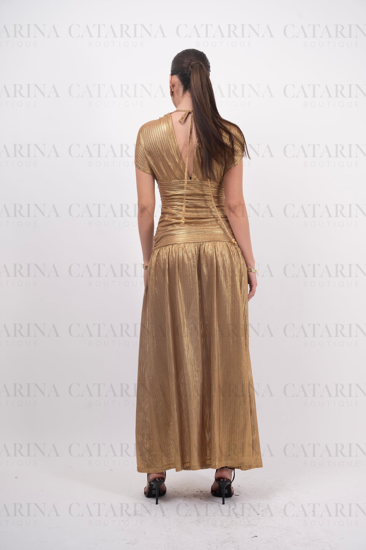 Vestido de color liso. Manga corta. Escote en V. Detalle de drapeado. Lazadas ajustables en cuello.